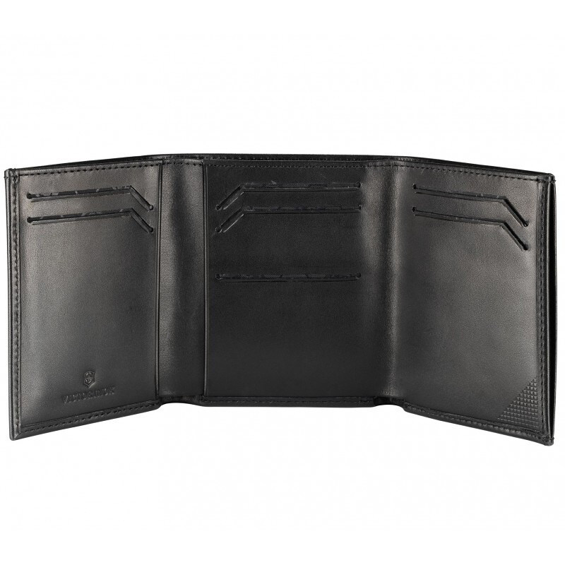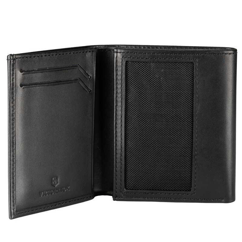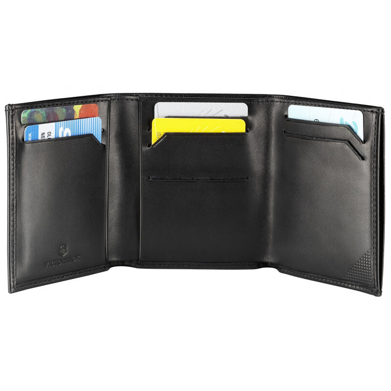 ALTIUS EDGE (модель Euler) – швейцарське чоловіче портмоне від всесвітньо відомого бренду Victorinox Travel (Вікторінокс Тревел). Чудовий дизайн у класичному чорному кольорі з фірмовим металевим значком-логотипом у лицьовій частині та тисненою назвою компанії у внутрішньому оформленні.Вертикально орієнтоване портмоне виготовлене з висококласної натуральної шкіри. Компактний дизайн в три складання, без застібок, який чудово підійде чоловікам різного віку.Захисна підкладка RFID запобігає несанкціонованому зчитуванню інформації з ваших карток. Кожен слот для карток має спеціальний бічний зріз під кутом 45 градусів, що забезпечує легке діставання картки. ✔ Матеріал: натуральна шкіра із захисною підкладкою RFID.✔ Розміри (ширина х висота х товщина): 9 х 10 х 2 см✔ Всередині: 1 відділення для банкнот; 1 прозорий слот для посвідчення особи чи фото; 6 слотів для кредитних та візитних карток; слоти для міні, мікро та стандартних карток пам'яті.✔ Колекція: Altius Edge.✔ Номер моделі: 601999✔ Бренд: Victorinox Travel, Швейцарія.✔ Глобальна 2-річна гарантія якості від виробника.