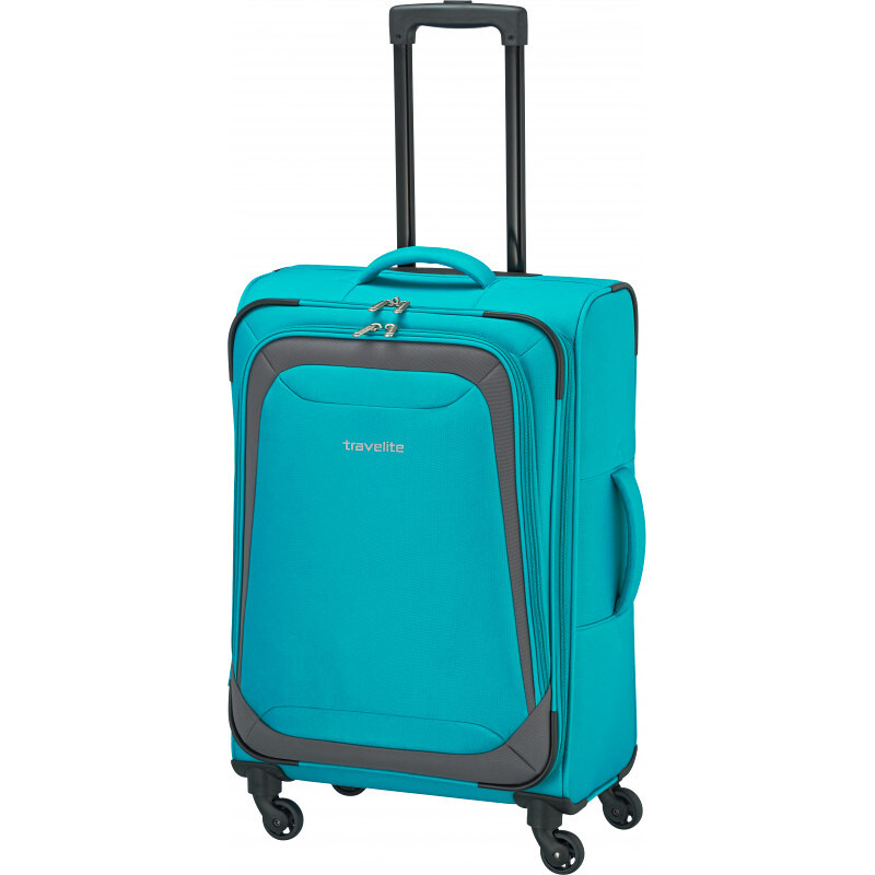 Валіза Travelite NAXOS 59 / Turquoise M Середня TL590048-23 - це чудове рішення для спокійних подорожей. Сучасний тканинний багаж із хорошими технічними характеристиками. Країна - Німеччина. Гарантія - 2 роки. Колір блакитний. Розмір M: 42x64x25 см, об'єм - 61 л, вага - 3 кг. Матеріал валізи - поліестер. Міцна і зносостійка тканина, яка добре проявляє себе в процесі експлуатації. Поліестер - це синтетичний водонепроникний матеріал. Він не боїться ультрафіолету, що говорить про збереження всієї глибини кольору. Мало важить і простий у догляді. Система 4-х гладких коліс із маневреним і впевненим ходом, долають різні текстури поверхонь. Керувати валізою зручно за допомогою ергономічної телескопічної ручки з регульованою висотою. На лицьовій панелі розташувалося відділення-кишеня, куди можна спакувати все те, що повинно бути в швидкому доступі. Одна суцільна камера посприяє компактному пакуванню речей, в неї інтегровані компресійні ремені. Закриття здійснюється подвоєною блискавкою. На верхній і на бічній частинах розташовані дві м'які ручки для перенесення і підйому. Середні габарити валізи універсальні для різного роду подорожей. Дорожня валіза Тревелайт (Travelite) NAXOS 59 / Turquoise M Середня TL590048-23 забезпечить кожну Вашу подорож комфортом і впевненістю. Зробіть свій вибір на користь німецького багажу, який складе довгі роки надійної служби!