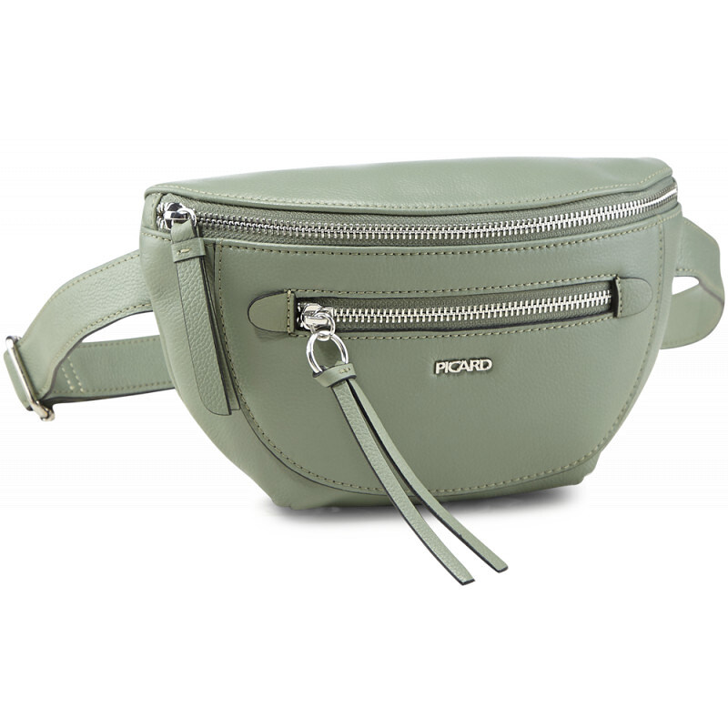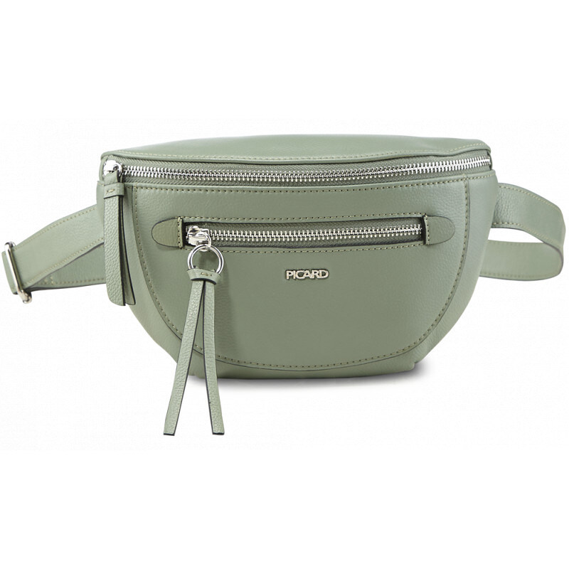 Сумка на пояс Picard FENGSHUI / Salvia Pi9488-2R7-1T2 - це чудове поєднання всіх неперевершених характеристик, компактності і найбільш стильного дизайну. Ця модель представлена в приємному зеленому кольорі. Матеріал - натуральна шкіра. Зерниста текстура поверхні. Шкіра пройшла ретельне мінеральне дублення. Має масу позитивних властивостей, які надають особливої стійкості до зношування і різного роду деформацій. Сумка добре зберігає колір. Сталевого кольору фурнітура з яскравим блиском. Країна виробника - Німеччина. Поясна сумка орієнтована горизонтально. Тип закриття - блискавка. Регульований ремінець. Функціональні особливості моделі: - передня кишеня, - одне основне відділення, - внутрішні кишені. Розмір: 25x16x4 см. Сумка на пояс Пікард (Picard) Fengshui Pi9488-2R7-1T2 доповнить Ваш образ цікавим акцентом і стане практичним аксесуаром, який подарує особливий комфорт протягом дня. Обирайте тільки найкращі аксесуари від Пікард в магазині Chemodanoff!