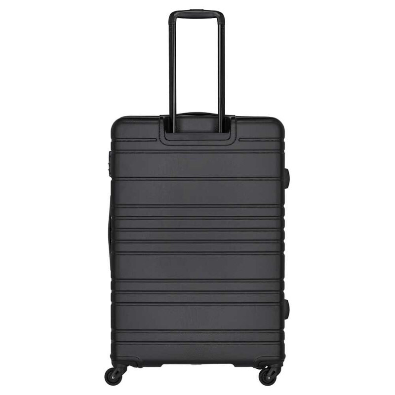 Валіза Travelite ROADTRIP / Black L Велика TL075949-01 - це місткий, стильний і якісний багаж за доступною ціною. Створена для стабільних і спокійних пересувань. Країна - Німеччина. Колір - чорний. Стійка до абразивного зносу оболонка з ABS пластику. Жорсткий і міцний корпус з цікавою деталізацією. Для речей передбачено дві камери з пакувальними ременями і з роздільником. Найбільший об'єм. Розмір L: 52x77x29 см, об'єм - 97 л, вага - 4,4 кг. Закриття здійснюється на блискавку з водовідштовхувальною окантовкою, яка амортизує удари і відштовхує воду. Чотири гладких колеса з радіусом обертання 360 градусів і з тихим ходом. На боці розташовані ніжки-опори. Телескопічна ручка, завдяки якій зручно керувати і дві ручки для підйому і перенесення. Валіза на колесах Тревелайт (Travelite) Roadtrip TL075949-01 чудово впорається з усіма базовими завданнями, гарантуючи цілісність речей, що перевозяться, і комфорт транспортування.