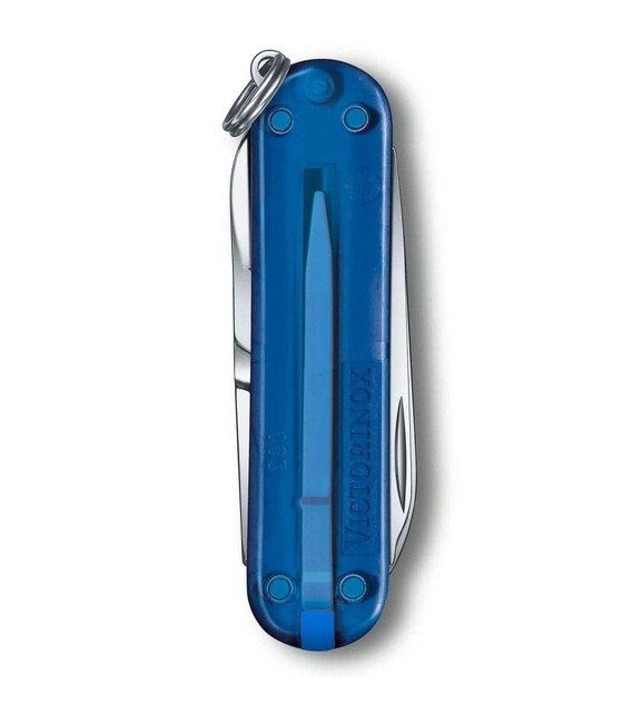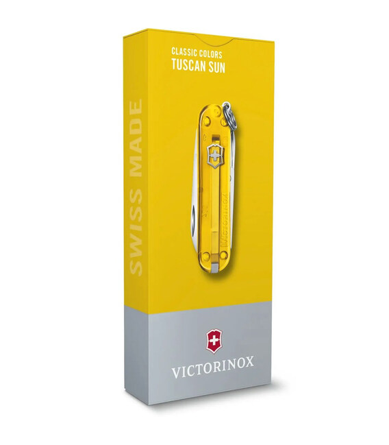 Victorinox CLASSIC SD UKRAINE з жовто-синіми напівпрозорими накладками – швейцарський складаний ніж-брелок 58 мм на 7 функцій. Унікальний дизайн у кольорах української державної символіки. Бездоганна швейцарська якість із частинкою української душі. Практичний та змістовний подарунок.Маленький та мультизадачний, він чудовий додаток до вашого щоденного арсеналу корисних речей. Закріплений на ключах або знайшовши своє місце у вашій сумці, цей малюк завжди готовий до роботи. Від ножика і ножиць до пилочки та викрутки, від дрібного ремонту до гігієни рук – вас не застануть зненацька дрібні життєві завдання.Інформація про складаний ніж CLASSIC SD UKRAINE [0.6223.T81G.T2]✔ Ексклюзивний ніж із патріотичної колекції Classic SD Ukraine.✔ Жовто-сині (Tuscan Sun + Deep Ocean) транспарантні накладки з пластика ABS.✔ Ніж швейцарського виробництва з першокласної неіржавної сталі.✔ 7 функцій.✔ Розмір ножа по руків’ю (довжина х ширина х товщина), мм: 58 х 18 х 9✔ Вага: 20 г✔ На ніж розповсюджується довічна гарантія якості Victorinox.✔ Картонна подарункова коробка для Classic SD Colors Tuscan Sun.Функції:1. невеликий ніж 40 мм2. ножиці з пружинним механізмом3. пилочка для нігтів4. - маленька плоска викрутка 2.5 мм5. пінцет6. зубочистка7. сталеве кільце для кріплення Виготовлено у Швейцарії.Справжня продукція, професійний гарантійний сервіс та швидка доставка.