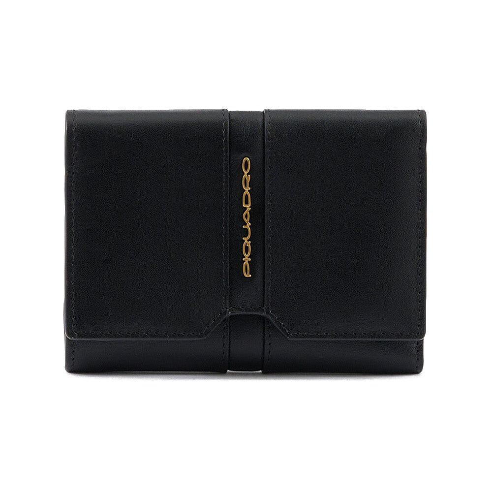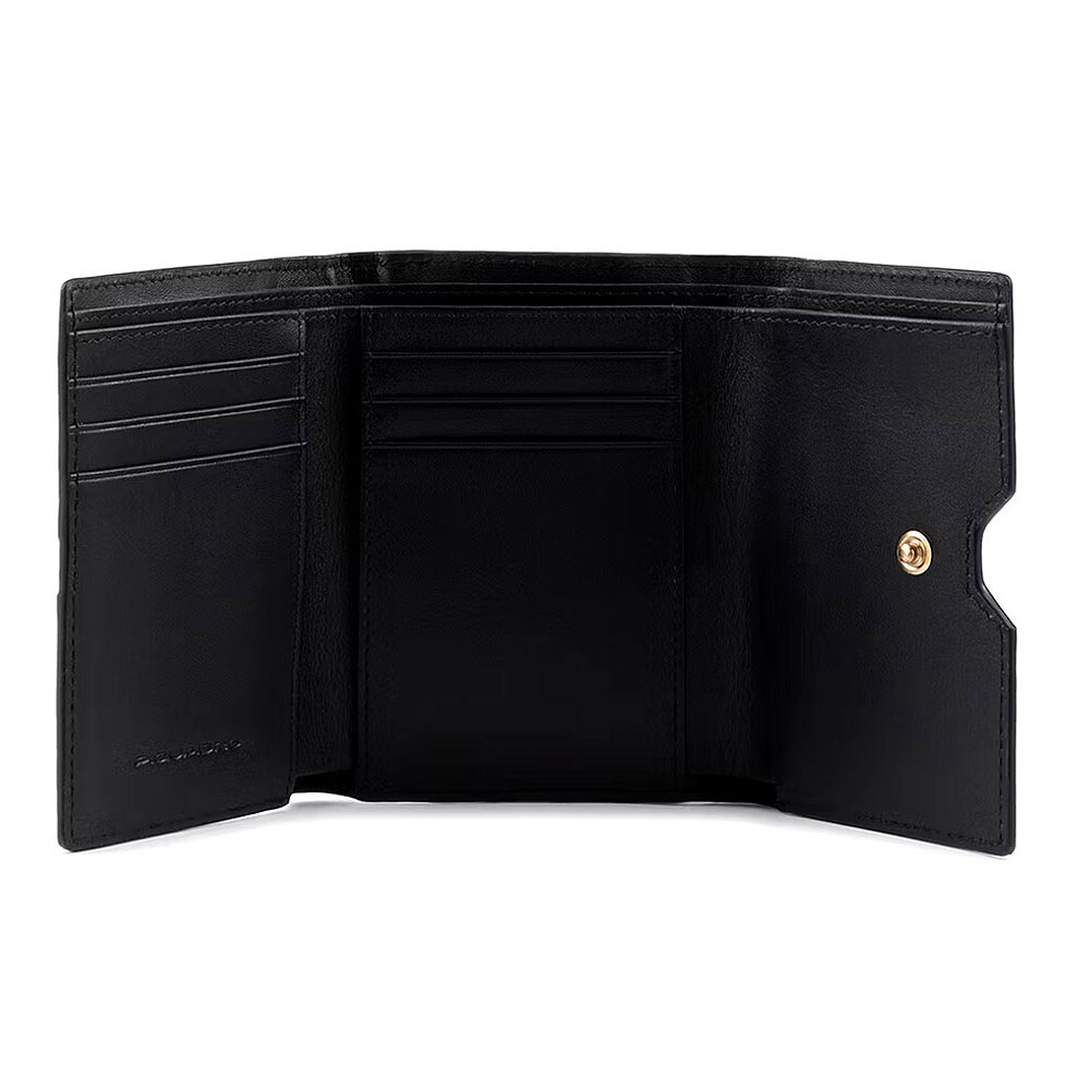 Портмоне Piquadro Ray (S126) Black PD5216S126R_N Жіночий аксесуар Ray PD5216S126R/N із натуральної шкіри та з продуманим дизайном забезпечить максимальний комфорт користування та продемонструє відмінне почуття стилю своєї власниці.Портмоне з вертикальним дизайном закривається на кнопку.Інтер'єр портмоне з кишенями для кредитних карток.Монетниця на блискавці винесена окремо для швидкого доступу до монет.RFID захист убереже Ваші персональні дані від списання їх шахраями, допоки кредитні картки будуть всередині аксесуара.Колекція Ray виготовлена зі шкіри з дрібним зерном, ідеальна для ділового та повсякденного користування. Сумки, аксесуари та рюкзаки відмінно підходять для носіння всього найнеобхіднішого.100% оригінал Piquadro Якісна італійська шкіргалантерея Жіночий дизайн RayRFID захист Вертикальний дизайн Складаний формат із закриттям на кнопку Відділення для купюр Кишені для карт Монетниця на блискавціБрендування Piquadro Країна виробника – Італія. Гарантія – 2 роки.Чорний колір – Black/PD5216S126R/N. Матеріал – натуральна шкіра.Розмір: 9x12x2 см.Італійські шкіряні портмоне Piquadro 100% оригінал у магазині Chemodanoff. Доставка по Україн