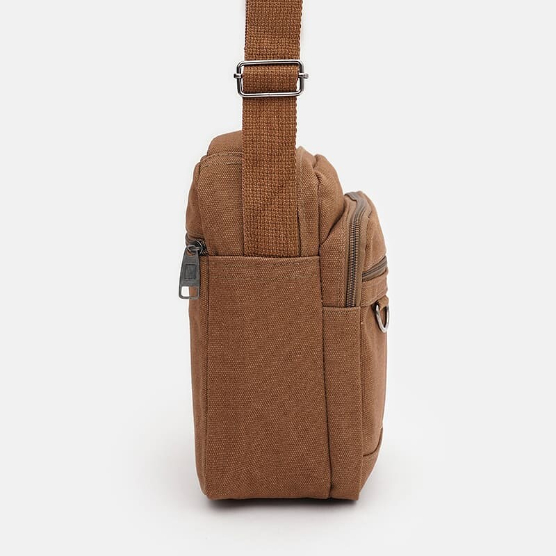 Чоловіча сумка виготовлена з міцного текстилю. Має 1 основне відділення на блискавці. Усередині сумки є 1 кишеня на блискавці та 1 кишеня для телефону або інших дрібниць. З лицьового боку-2 кишені на блискавці, з тильної-1 кишеня на блискавці. Підкладка текстилю. Незнімний ремень регулюється по довжині.