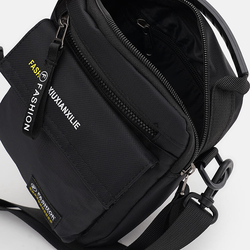 Чоловіча сумка виготовлена з якісного текстилю. Має 1 основне відділення на блискавці, всередині є 1 кишеня на блискавці та 1 кишеня для телефону або інших дрібниць. З лицьового боку – 2 кишені. Підкладка текестиль. Незнімний ремень регулюється по довжині.