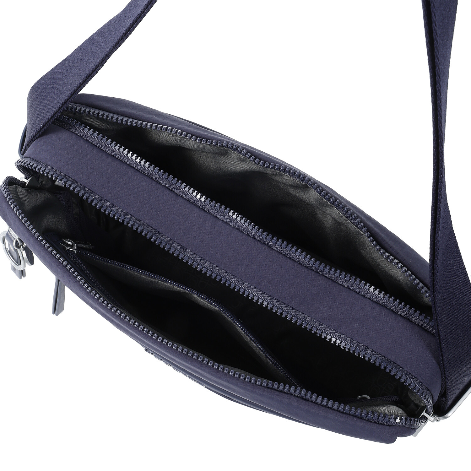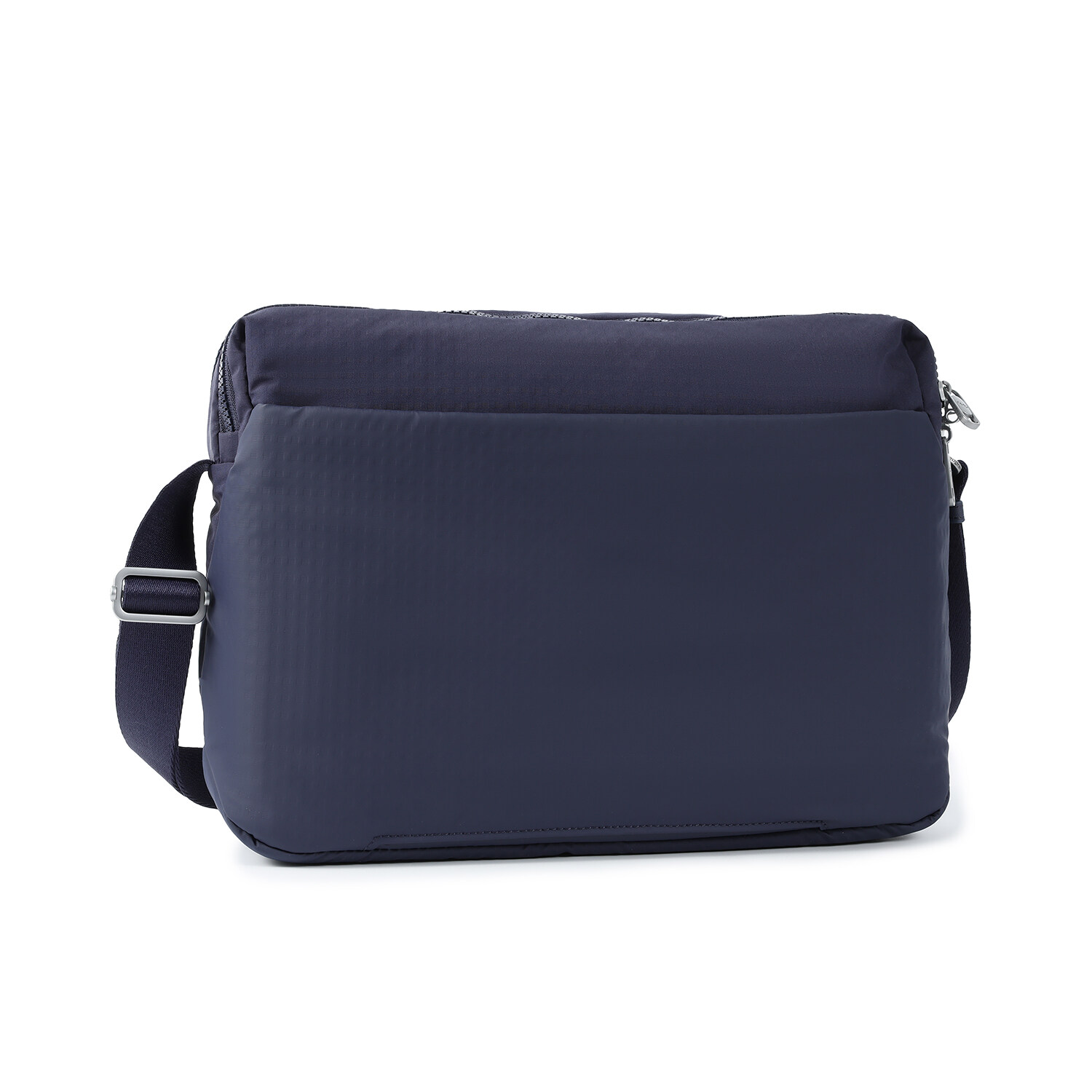 Зручна, містка сумка через плече виготовлена з переробленої тканини в поєднанні з еко-шкірою. Оснащена двома основними відділеннями на блискавці, з відділом для смартфону, та додатковою кишенею на блискавці з RFID-захистом в першому, другий відділ передбачений для ноутбука 13" та документів формату А4, і тому на даному відділі блискавка, передбачає можливість розмістити навісний замок для гарантування додаткової безпеки цінних речей. На задній кишені виробу, передбачено втоплену блискавку, яка щільно прилягає до тіла, як додатковий засіб безпеки, також, задня кишеня, за потреби, завдяки блискавці перетворюється у планку для фіксації на телескопічну ручку валізи, що безумовно полегшує пересування під час подорожей.