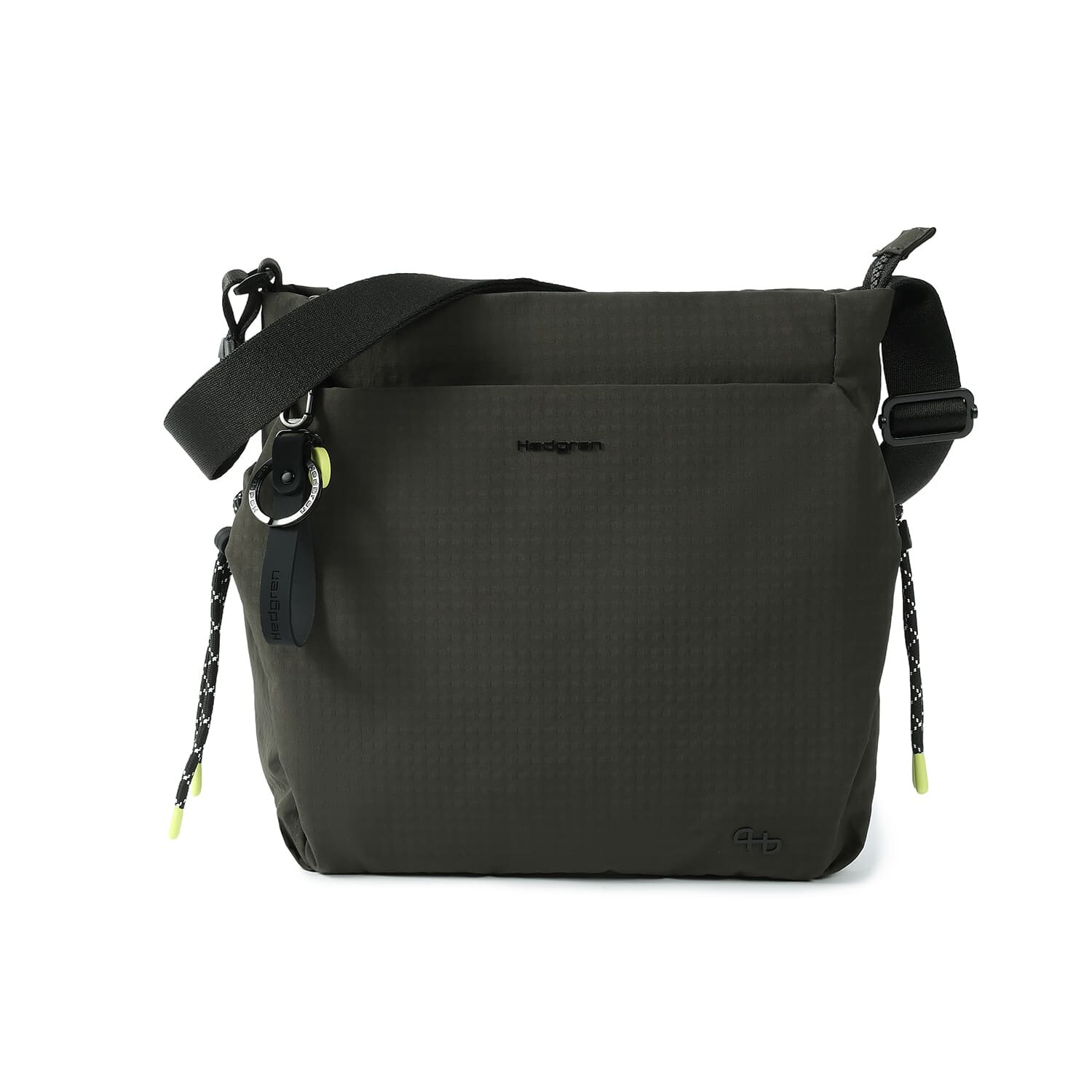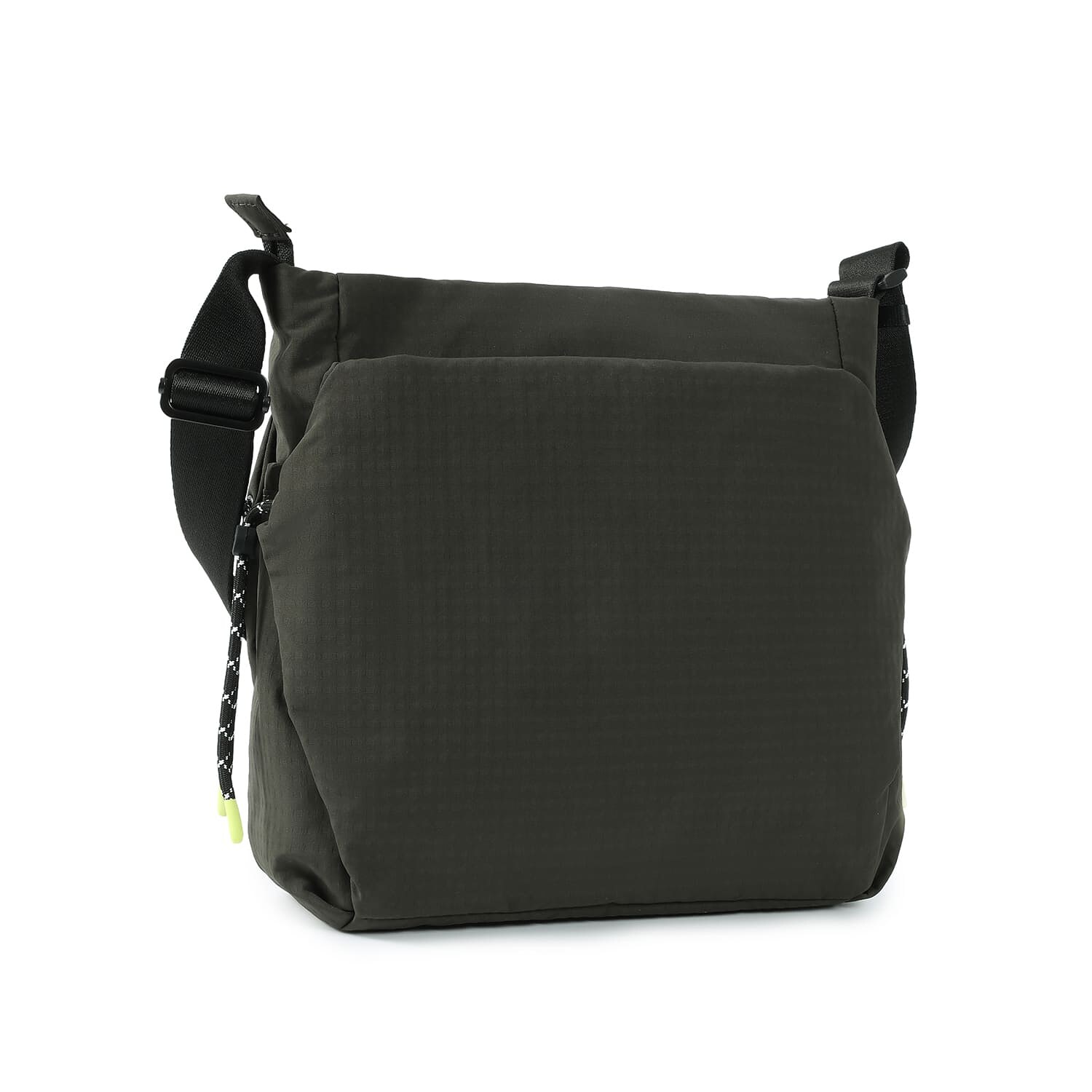 Зручна, сумка-кросовер. виготовлена з переробленої тканини. Оснащена основним відділенням на блискавці з відділом для смартфону, та додатковою кишенею на блискавці. Зовні оснащена кишенями з обох боків, для предметів першої необхідності. На задній кишені виробу, передбачено втоплену блискавку, яка щільно прилягає до тіла, як додатковий засіб безпеки. Також, за потребою сумка розширюється і має бокові кишені для пляшки/парасольки. Сумку можна носити завдяки регульованому про довжені ременю.