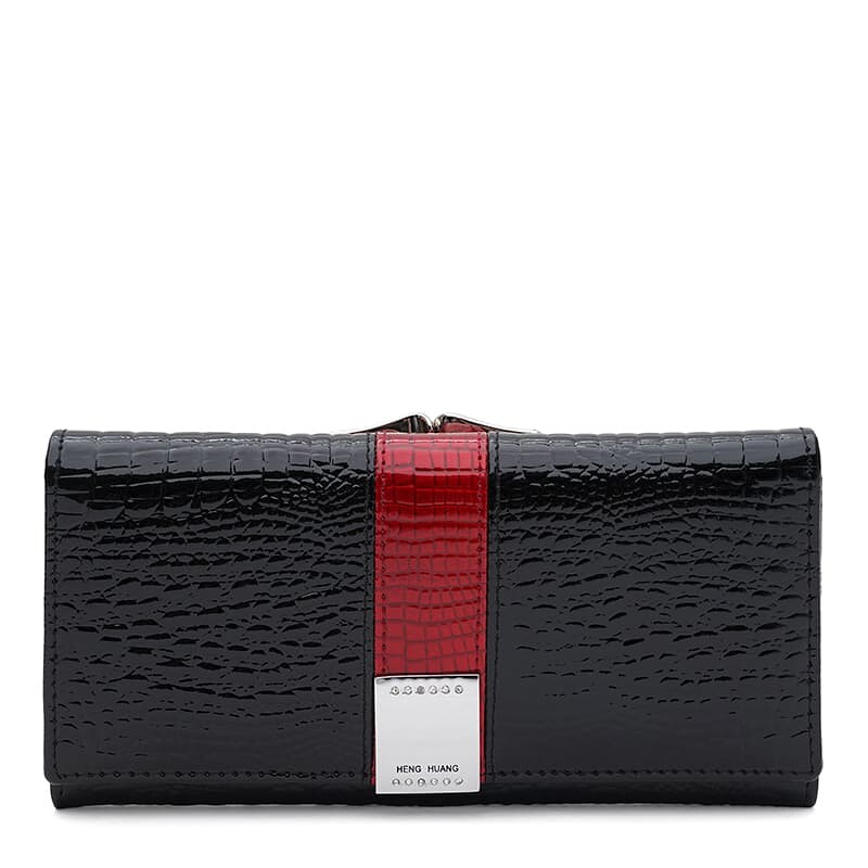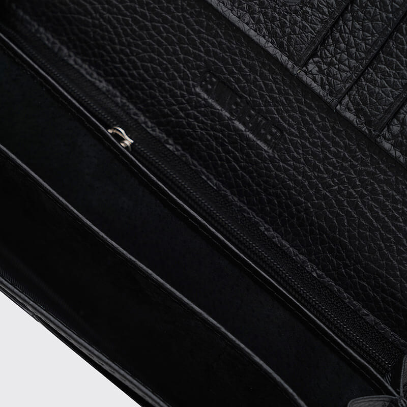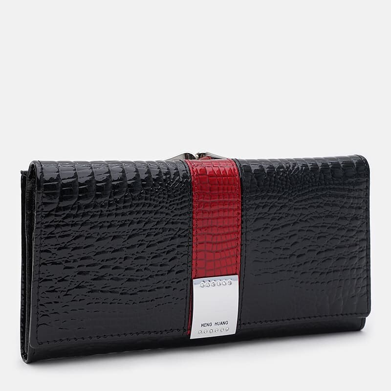 Жіночий шкіряний гаманець закривається на кнопку. Має 3 відділення під купюри, 9 відділів під карти, 1 монетницю, 1 кишеню на блискавці. Підкладка текстиль.