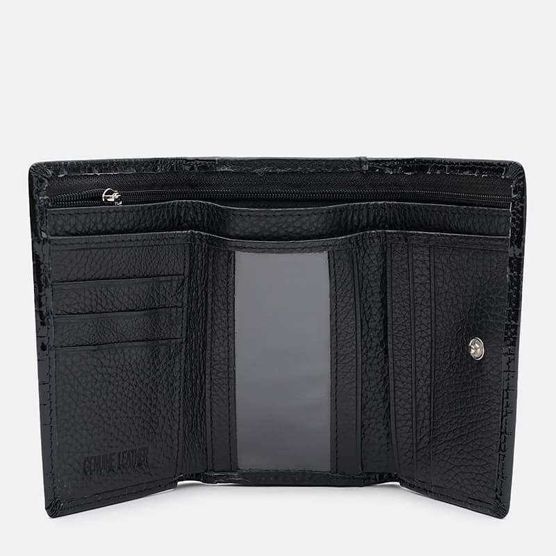 Жіночий шкіряний гаманець закривається на кнопку. Має 2 відділення під купюри, 7 відділів під карти, 1 монетницю поділено на 2 відділення, 1 кишеню на блискавці. Підкладка текстиль.
