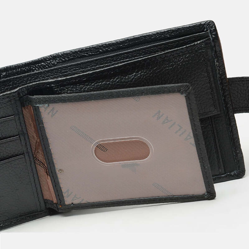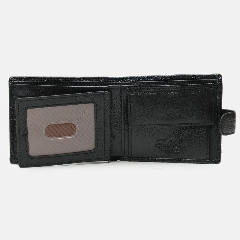Практична модель гаманця з натуральної шкіри. Функціонал: 3 відділення для банкнот (одне з яких на блискавці), кишеню на кнопці для монет, 3 слота для карт, прозора кишеня для фото або прав і 2 потаємних кишені. Підкладка: текстиль. Портмоне надійно закривається на кнопку.