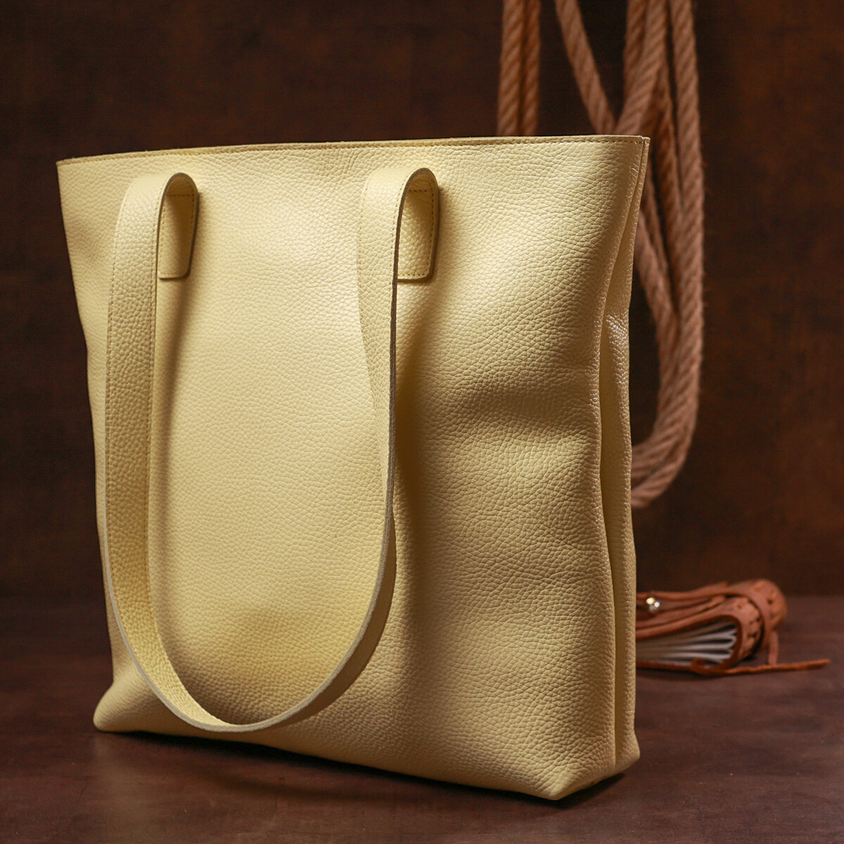 Стильна жіноча сумка у дивовижному лимонному кольорі, що виглядає по-літньому свіжо та красиво. Матеріал виготовлення – натуральна шкіра високої якості з підвищеними показниками стійкості до зношування. Внутрішнє наповнення представлене у вигляді просторого основного відділення з внутрішньою невеликою кишенею. На зовнішній стороні також є кишенька на блискавці.