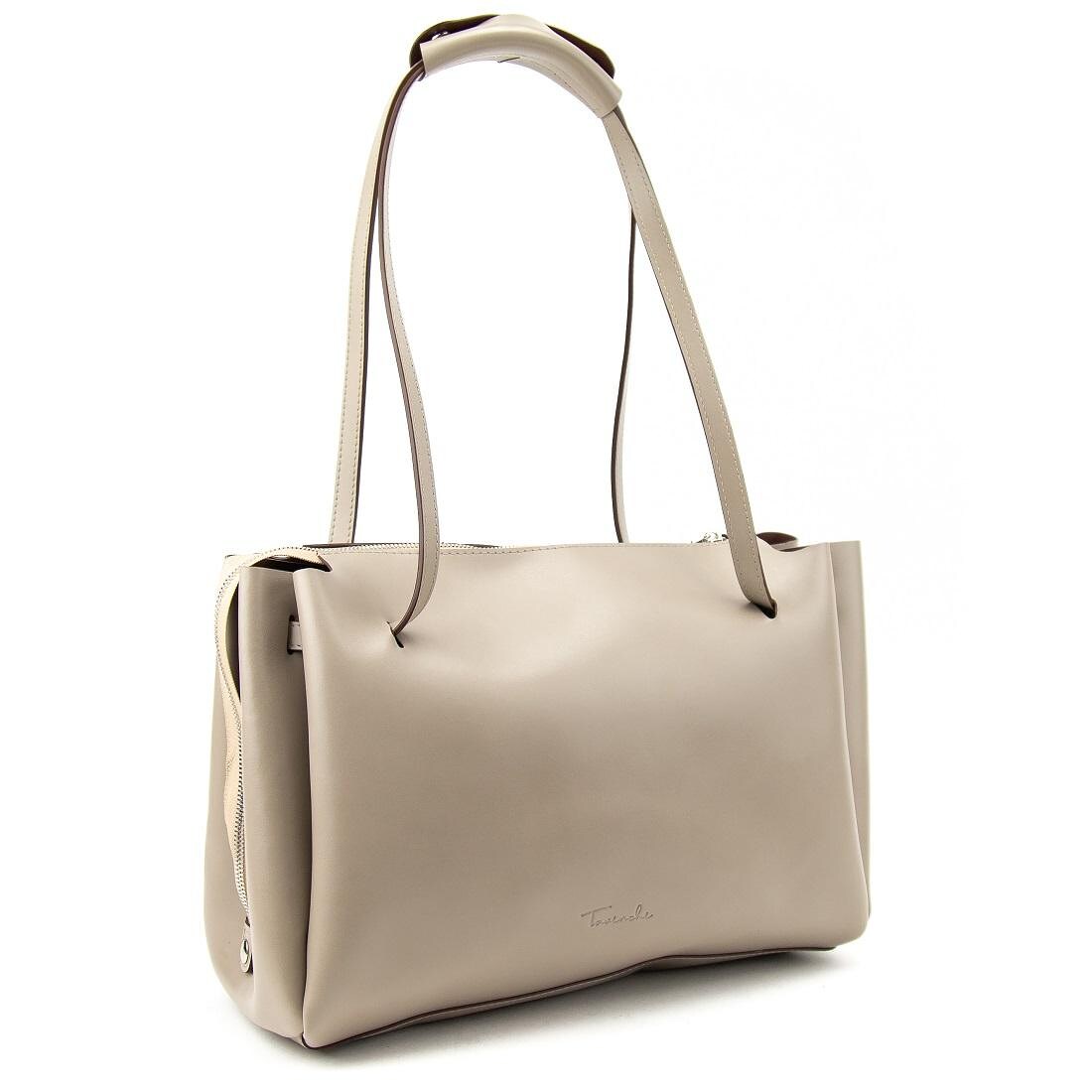 Сумка жіноча шкіряна в кольорі тауп Tavinchi CH-1665TРозміри: 26 x 33 x 12 см.Класична елегантна модель стане відмінним доповненням класичного, повсякденного або вечірнього образу. Простота дизайну та актуальна форма.Має одне велике основне відділення яке закривається на блискавку. Довгі ручки для носки в руці або на плечі. В середині відділенні є кишенька яка закривається на билскавку.Підкладка: без підкладки Матеріал виробу: натуральна гладка шкіра Колір тауп колір фурнітури: сріблоЗнайшли цю модель дешевше? Зв'яжіться з нами, і ми запропонуємо Вам найнижчу ціну в Україні, тому що виробник цього товару.