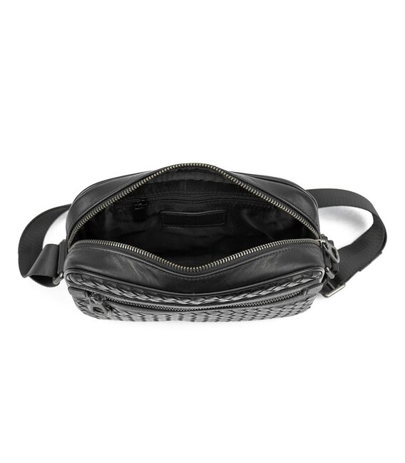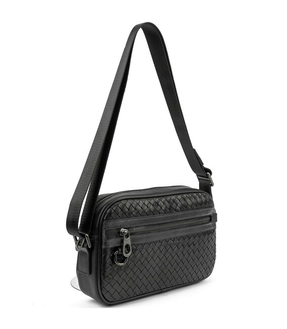 Шкіряна чоловіча плетена сумка чорного кольору TIDING BAG 883621-2A