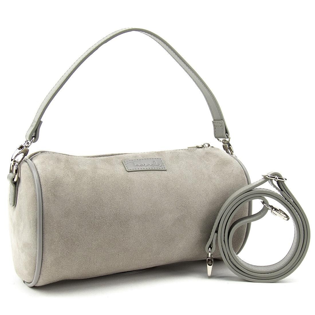 Стильне кроссбоді у формі бочонкаСумочка кросбоді з натуральної замші Розмір: 27 x 15 x 12 см. Модель невеликих розмірів Має одне відділення із закриттям на блискавку.Усередині є невелика кишенька для дрібних предметів. Коротка шкіряна ручка і наплічний довгий ремінець зі шкіри регулюється по довжині, відстібається за допомогою карабінів. З тільної сторони горизонтальна кишеня на блискавціПідкладка: текстиль Колір виробу: сірий Колір фурнітури: срібло Знайшли цю модель дешевше? Зв'яжіться з нами, і ми запропонуємо Вам найнижчу ціну в Україні, тому що виробник цього товару.