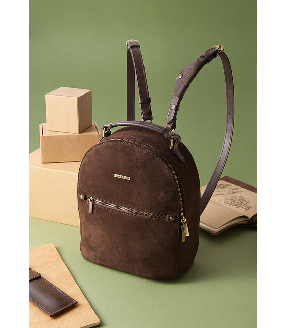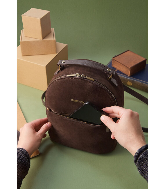 Шкіряний жіночий міні-рюкзак Kylie Темно-коричнева замша