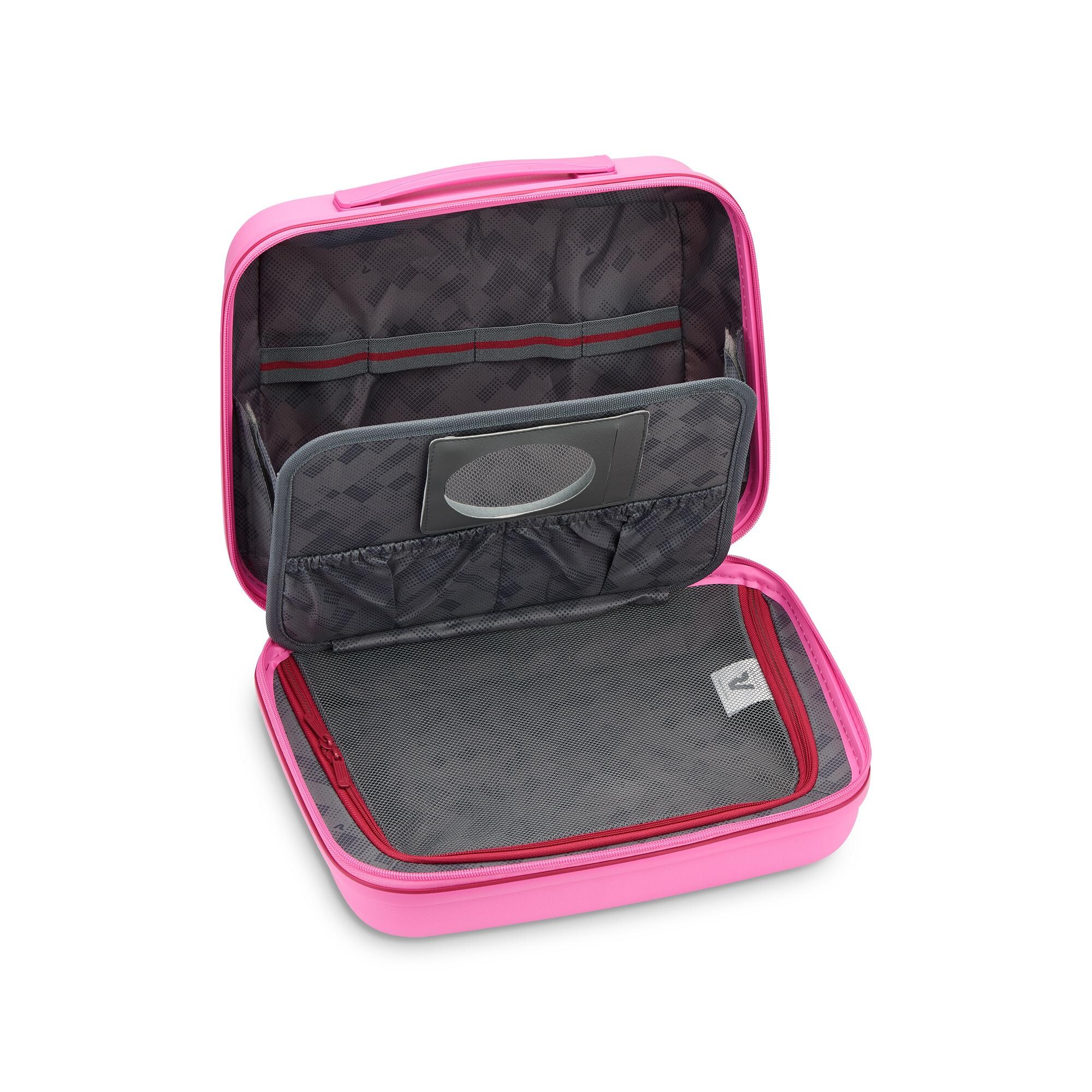 Бьюті-кейс із колекції Butterfly створений для Вашого комфорту під час подорожей. Вага та розміри аксесуара дозволяють взяти його в літак як ручну поклажу. Об'єм виробу підходить для того, щоб розмістити в ньому все необхідне. Для зручності перенесення є надійна пластикова ручка та знімний, регульований по довжині плечовий ремінь. Додатково на задній частині виробу передбачений розумний рукав для фіксації кейсу на телескопічну ручку валізи. Закривається за допомогою блискавки, всередині є безліч відділень для косметики та кишені на резинках для фіксації різного приладдя. Також передбачено маленьке дзеркало.
