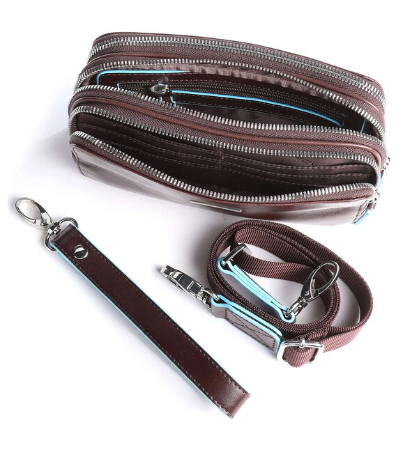Piquadro BLUE SQUARE/Cognac Сумочка з 3 відділеннями на блискавці та трьома ремінцями (19,5x10x6,5) AC2141B2 / MO Італія