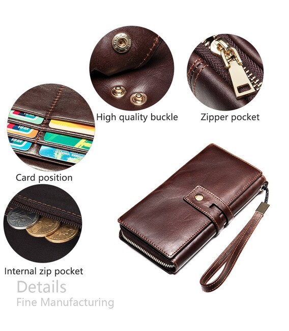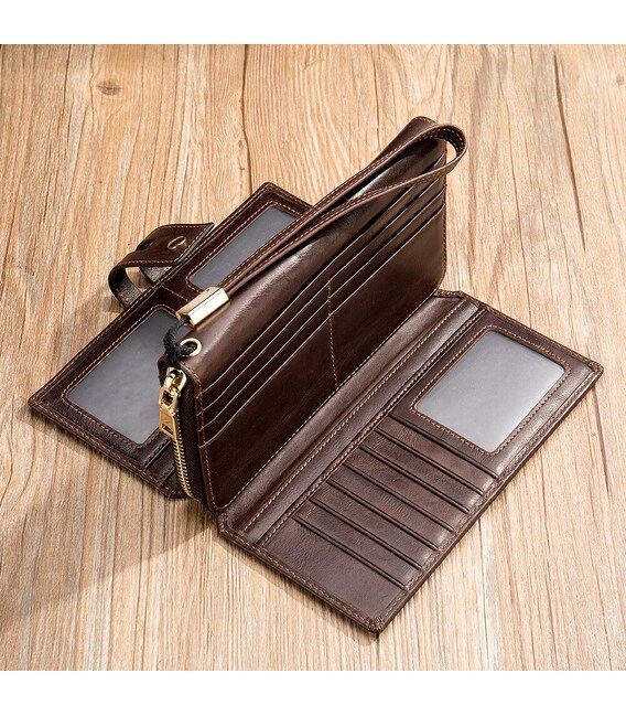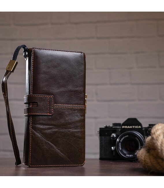 Дуже функціональний клатч з натуральної шкіри. Виріб володіє значним функціоналом. Особливістю даної моделі є те, що в ній доступні дві кнопки за допомогою яких ви можете регулювати наповненість клатча. Модель ідеально поєднує в собі функціонал портмоне і кредитниці. Якщо ви дуже часто носите велику кількість візиток і хочете тримати їх завжди під рукою - рекомендуємо вам даний клатч. Ви також можете носити виріб на зап'ясті за допомогою відповідного ремінця.