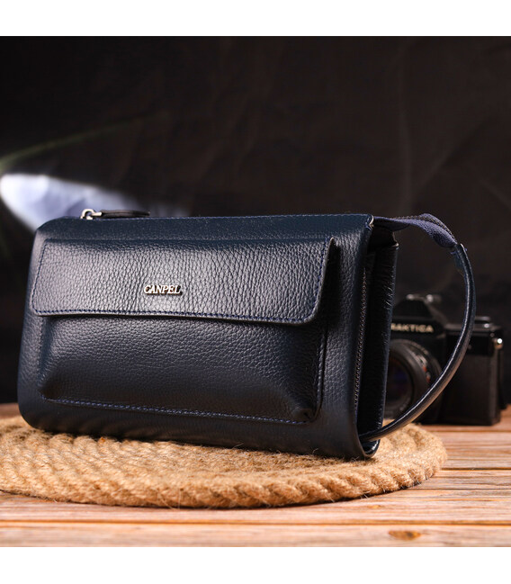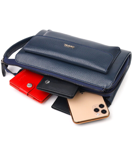 Сучасний чоловічий клатч із натуральної зернистої шкіри CANPELLINI 21558 Синій