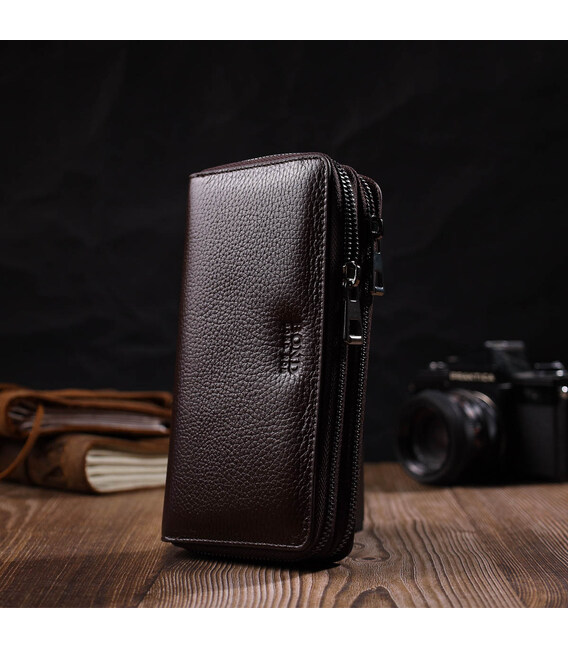 Місткий чоловічий клатч із двома відділеннями з натуральної шкіри BOND 22025 Коричневий
