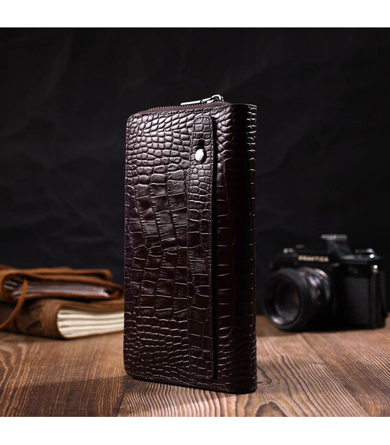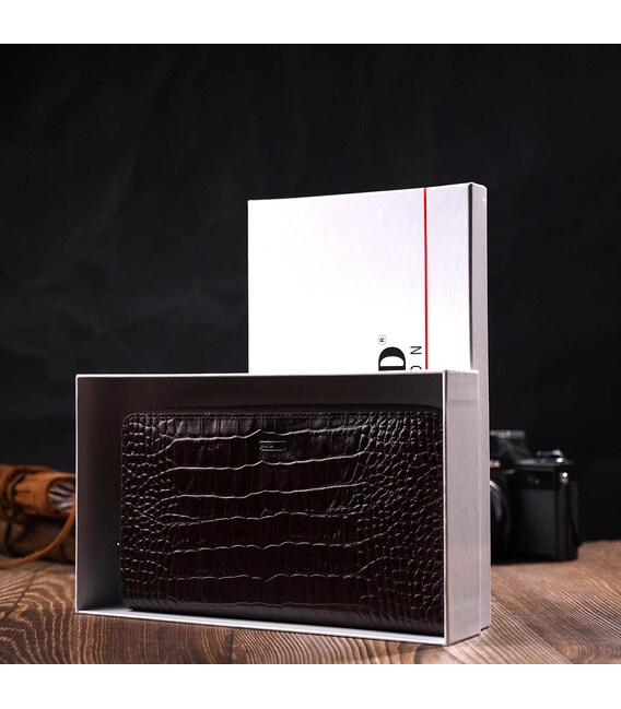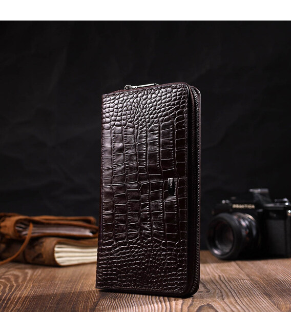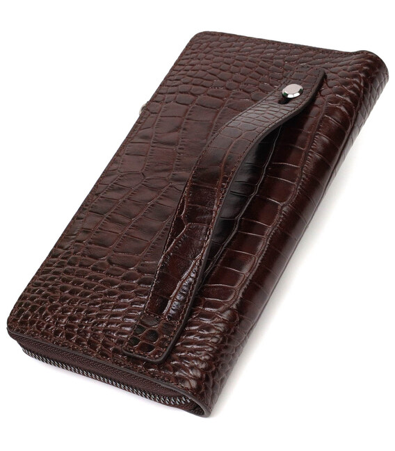 Детальніше Великий чоловічий клатч з одним відділенням з натуральної шкіри з тисненням під крокодила BOND 22028 Коричневий