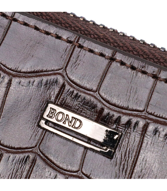 Великий чоловічий клатч з одним відділенням з натуральної шкіри з тисненням під крокодила BOND 22028 Коричневий