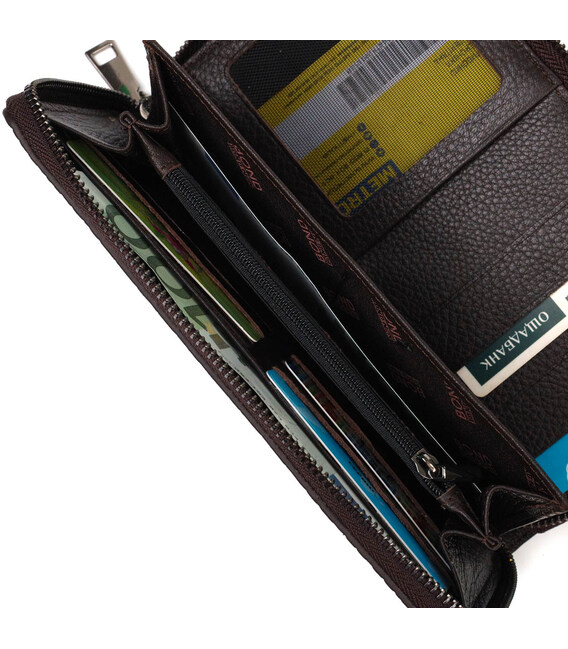 Широкий чоловічий клатч із натуральної шкіри з тисненням під крокодила, гаманець закривається на блискавку, всередині можна без проблем розміщувати паперові банкноти, банківські картки та навіть смартфон. Аксесуар складається з двох відділень для купюр, двох прилеглих кишень, сімнадцяти слотів для кредиток та монетниці на блискавці. Є також ручка долоні на тильній стороні клатчу. Продається гаманець у гарній коробці від виробника. Якісний і надійний клатч - саме такий аксесуар повинен бути у кожної людини, що поважає себе.