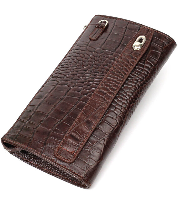 Детальніше Стильний чоловічий клатч із натуральної шкіри з тисненням під крокодила BOND 22048 Коричневий