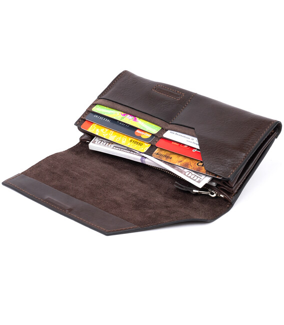 Якісний клатч в дорогій шкірі італійського виробництва. Виріб має продуманий до дрібниць дизайн. Дуже практичний. У клатч поміщаються купюри в розгорнутому вигляді. Доповнено аксесуар також осередками для кредиток. У клатч зібраний весь необхідний функціонал для сучасного клієнта. Виріб зручно лежить в руці. Глянцева шкіра відмінно і довго носиться і не вимагає до себе особливого догляду. У комплекті йде фірмова коробка. Клатч стане найкращим подарунком для ваших близьких.