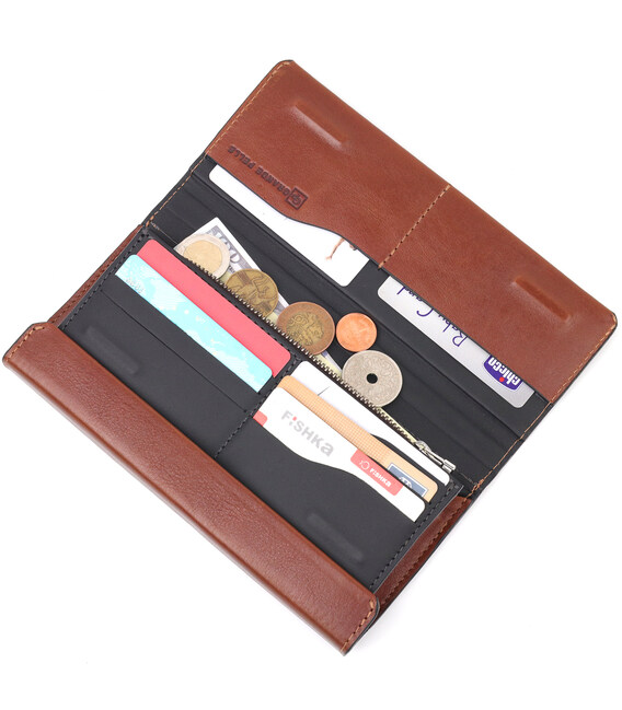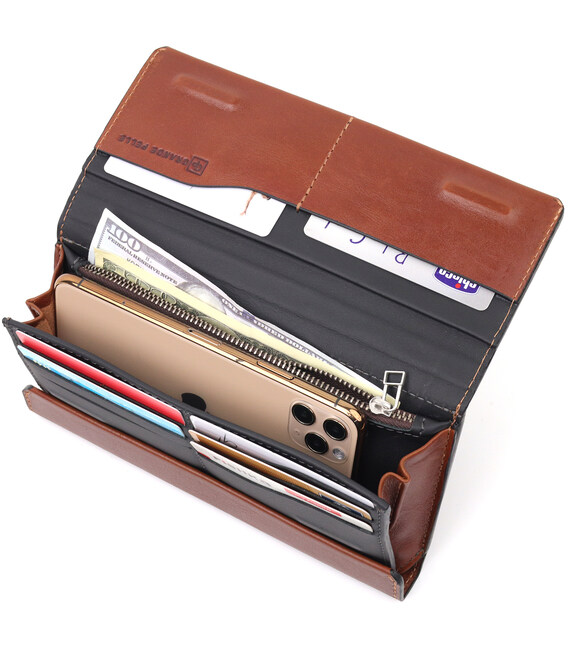 - 2 автономні частини під клапанами з магнітами: перша для купюр та кредиток, друга – для мобільного телефону;