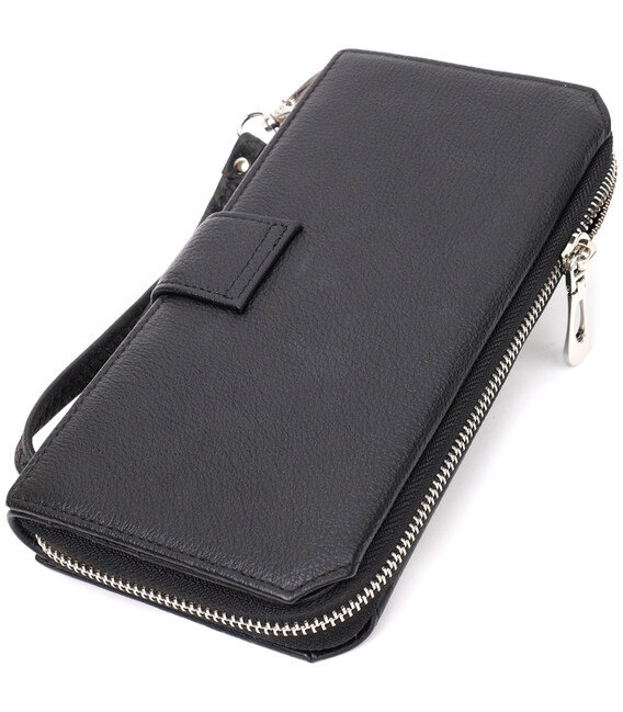 Модель можна носити в руці або на зап’ясті, для цього передбачений зйомний шкіряний ремінець. Завдяки продуманій конструкції гаманець допомагає зручно організувати все необхідне і тримати важливі речі завжди під рукою.