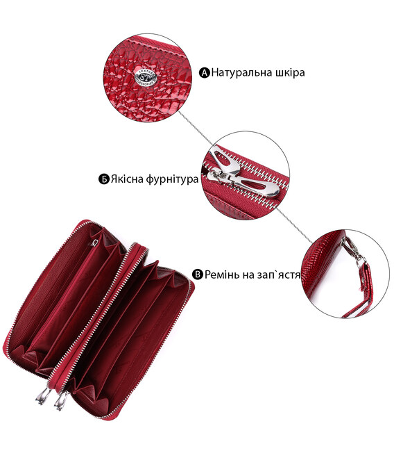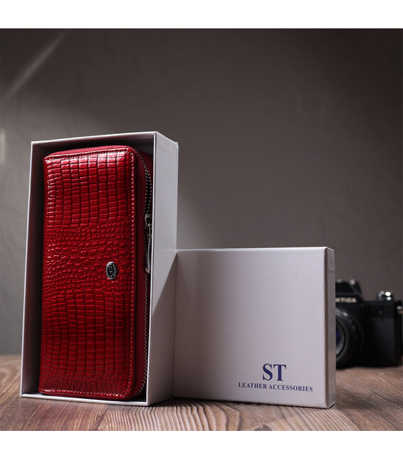 Детальніше Фактурний клатч на два відділення з лакованої натуральної шкіри ST Leather 22692 Червоний