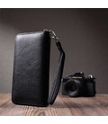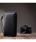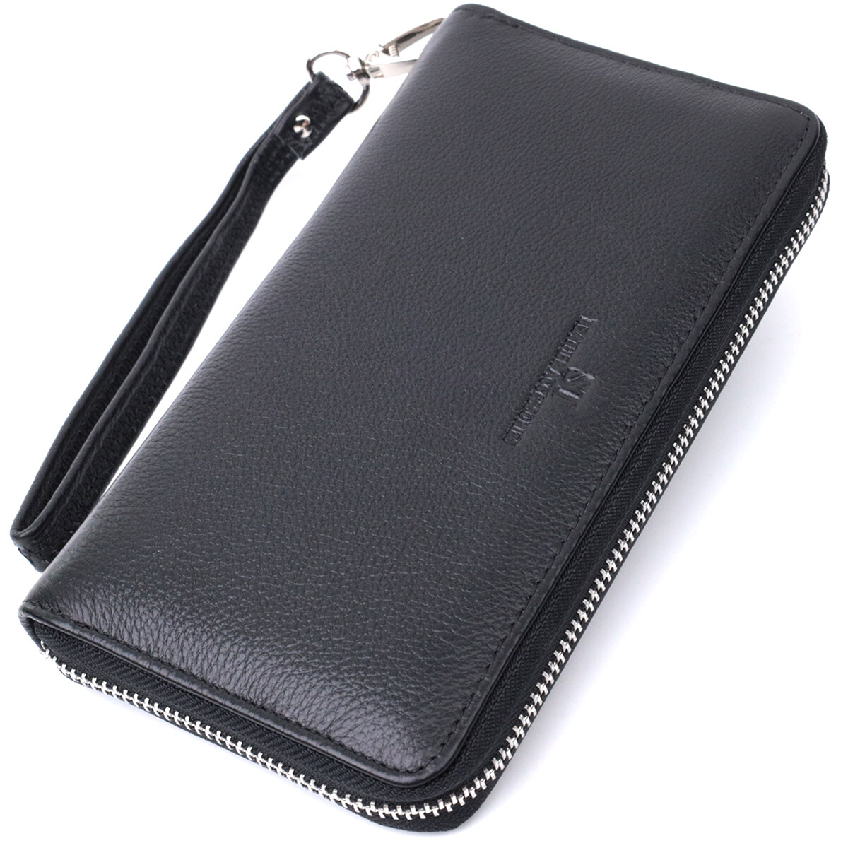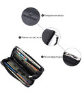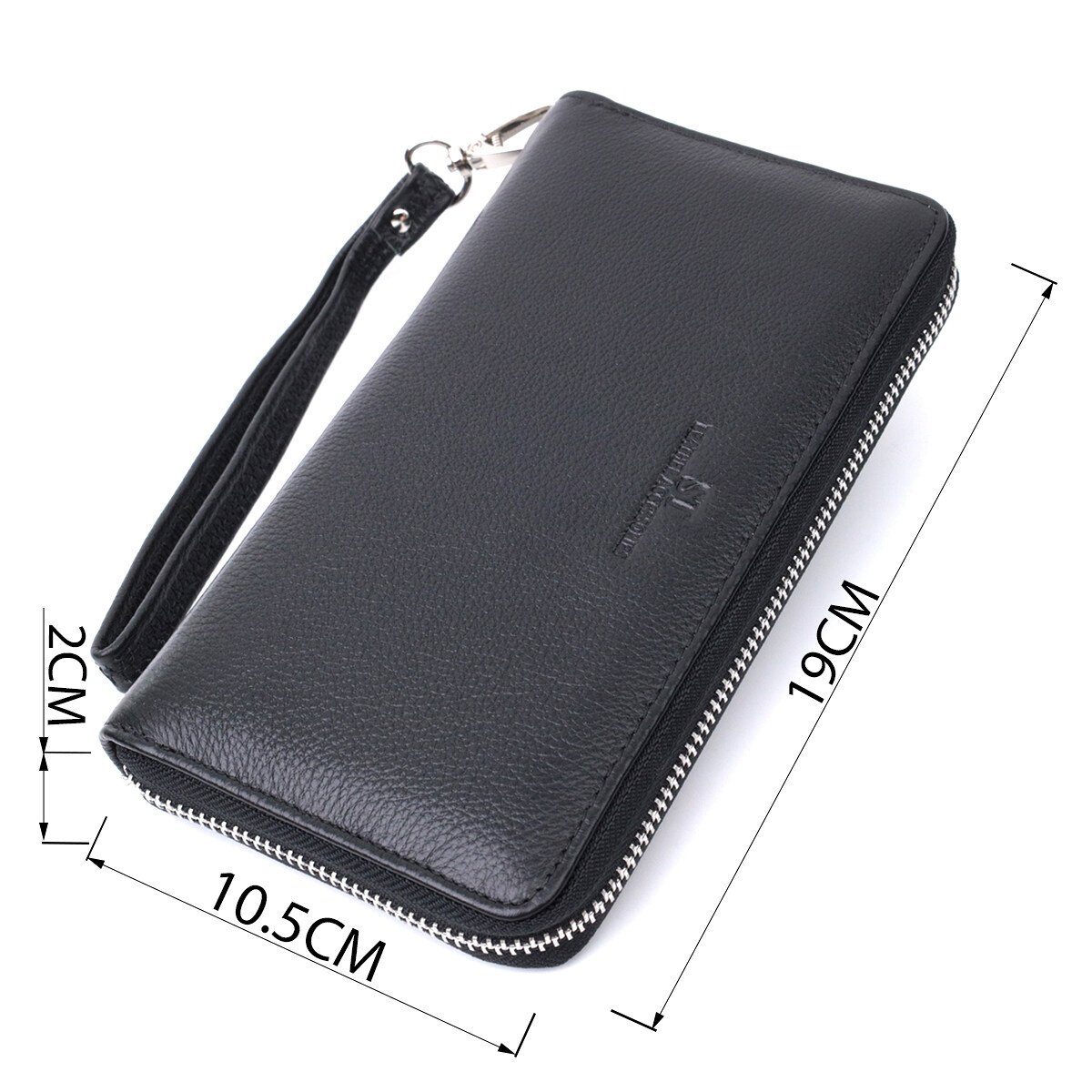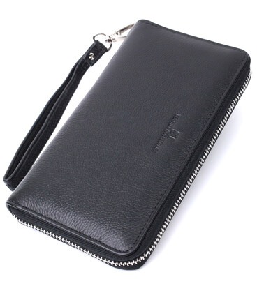Універсальний клатч у класичному стилі з натуральної шкіри, модель підійде як жінкам, так і чоловікам. Аксесуар має все необхідне, щоб стати Вам незамінним помічником у повсякденному житті. Ви легко помістите в нього паперові купюри, монети, документи, картки і навіть смартфон. На лицьовій стороні вгорі посередині розташоване тиснення з логотипом виробника, що є запорукою якості виробу. Запакований аксесуар у білу щільну картонну коробку з фірмовим логотипом.