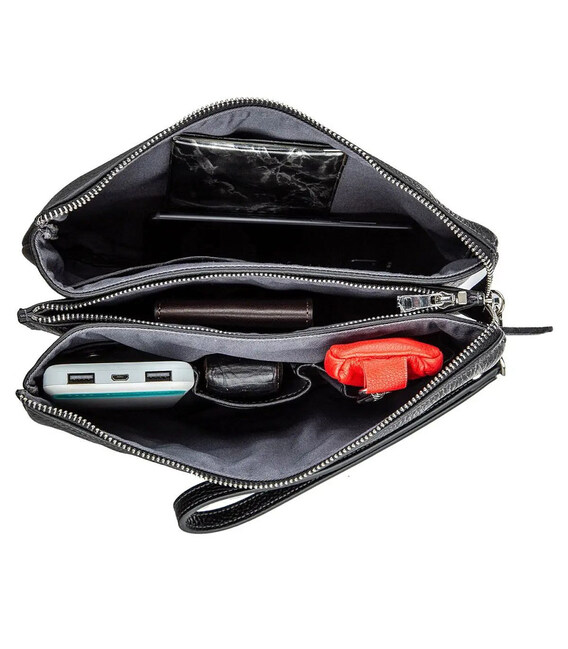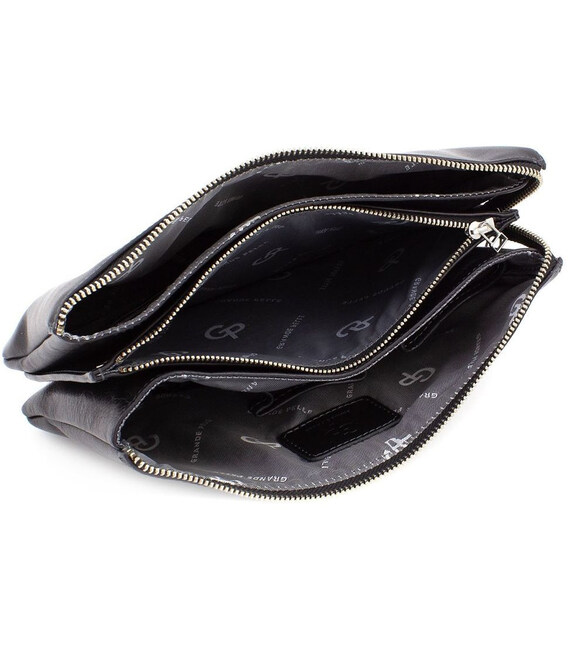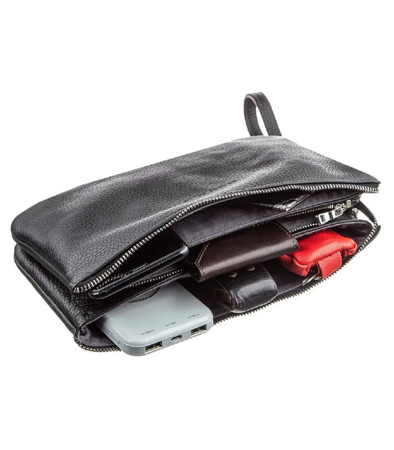 Детальніше Барсетка чоловіча клатч 705710, чорна фактурна шкіра Grande Pelle