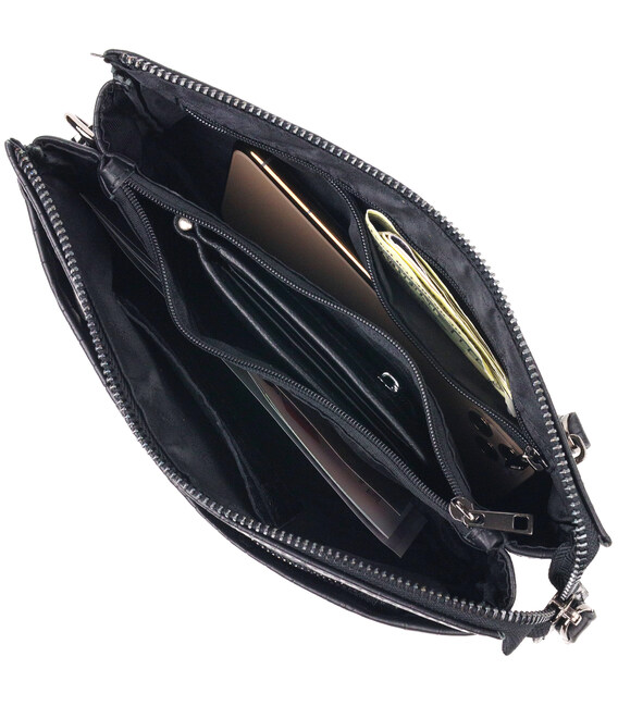 - зовні на тильній стороні чоловічого клатчу розташована ручка для перенесення в руці;