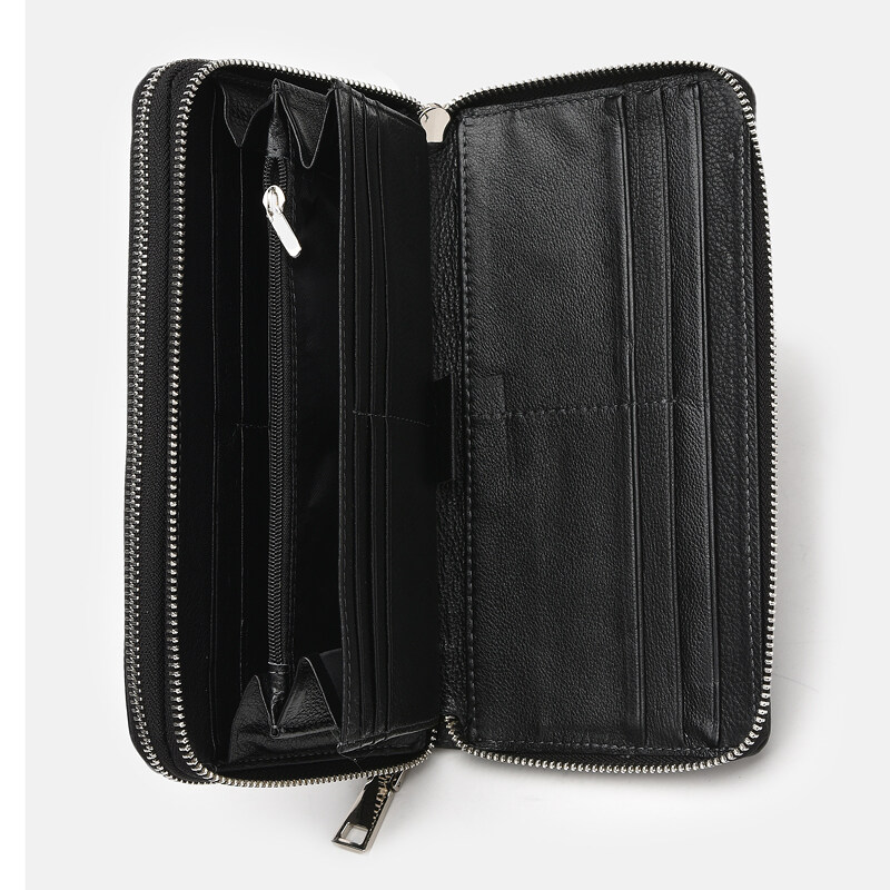 Клатч має 2 відділення на блискавках. В одному відділені- 4 кишені під купюри. У другому - 18 кишень під картки, 2 відділення під купюри і 1 монетниця. Підкладка текстиль. У комплекті є знімний ремінь на руку. Фурнітура-метал.