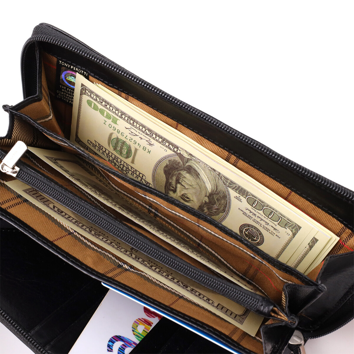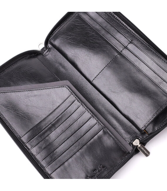 – усередині: три відділення для купюр, кишеня на блискавці та 14 осередків для карток;