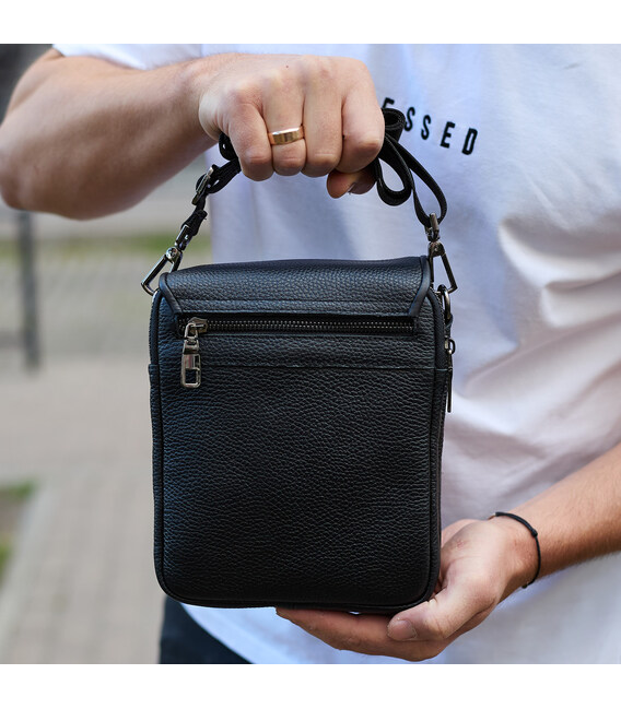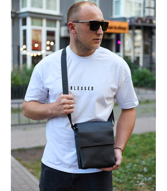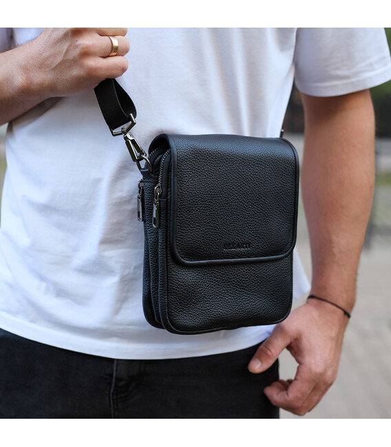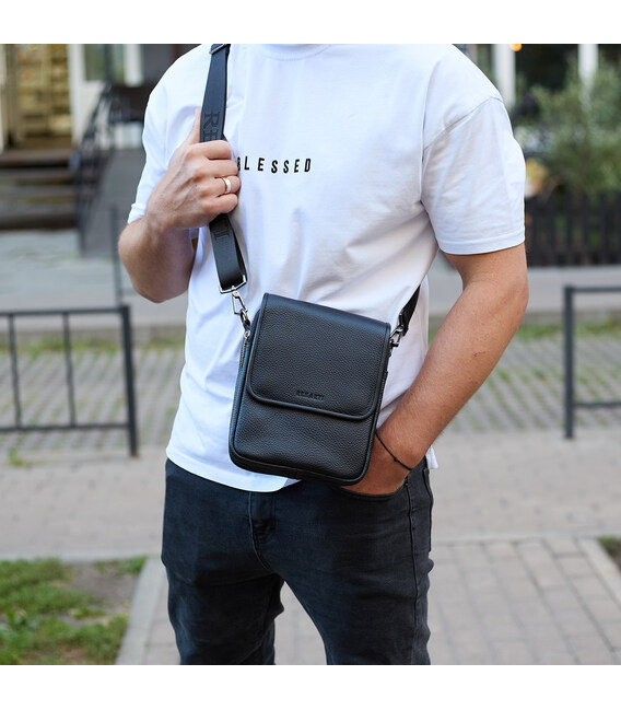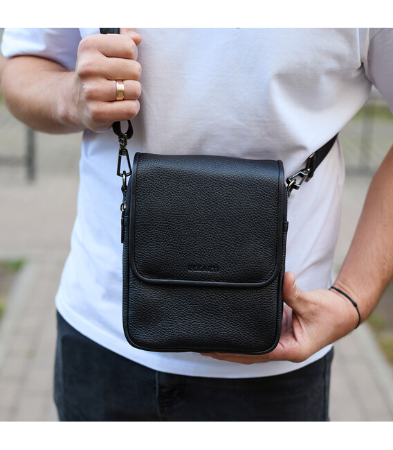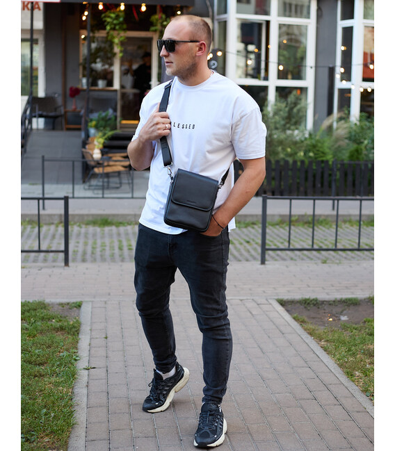 Чоловіча сумка барсетка на одне плече 17.5х22х6 , нагрудний месенджер для телефону, чорний