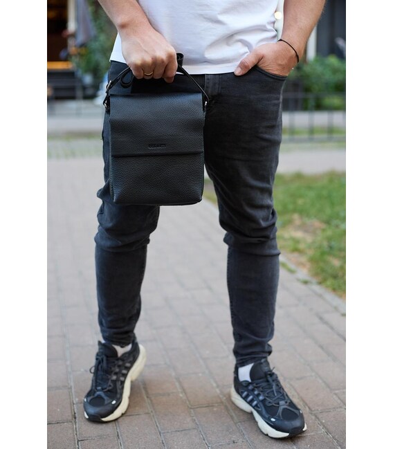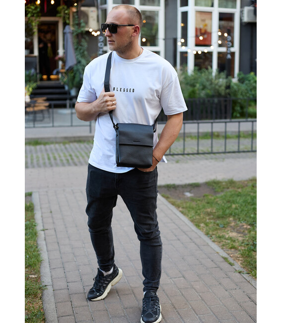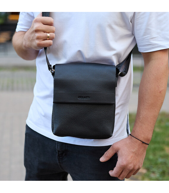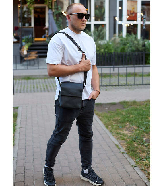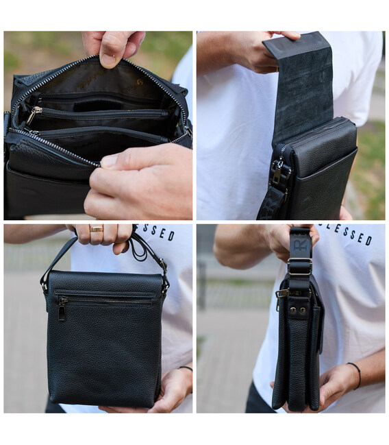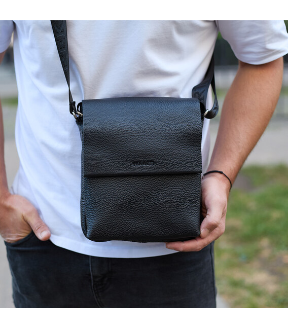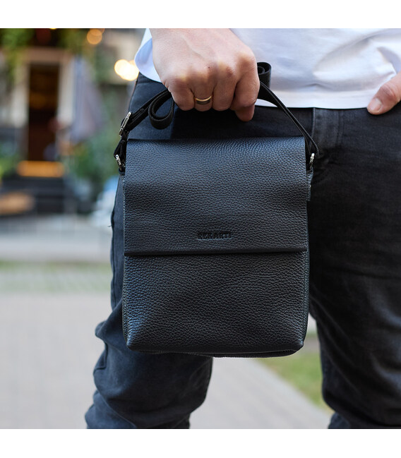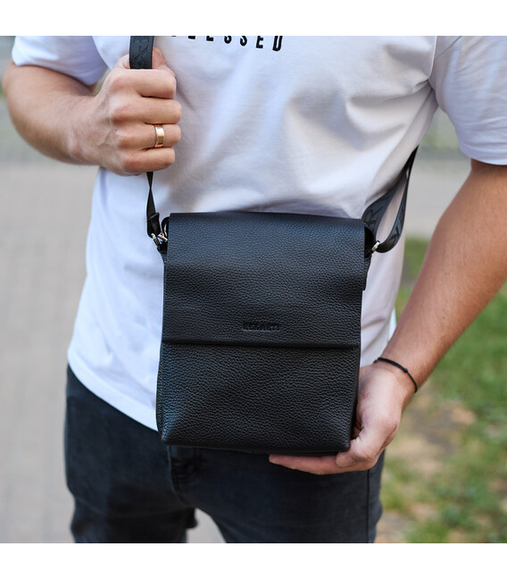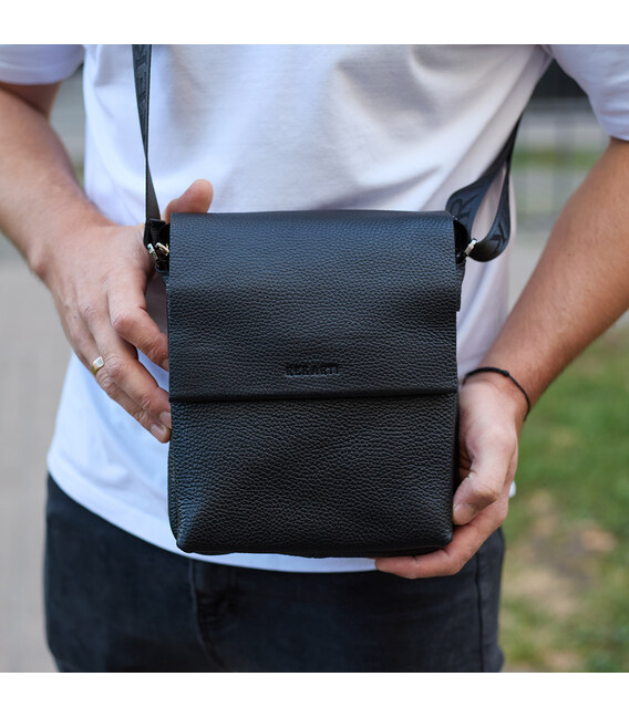 Шкіряний месенджер для чоловіка 23х19х7, барсетка через одне плече, сумка для документів, чорна