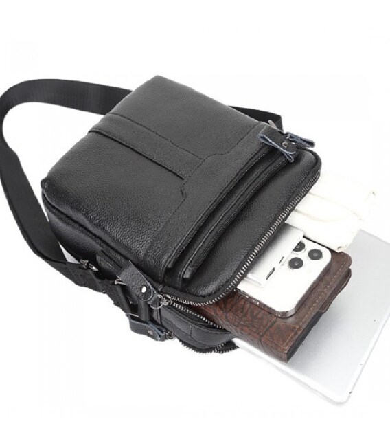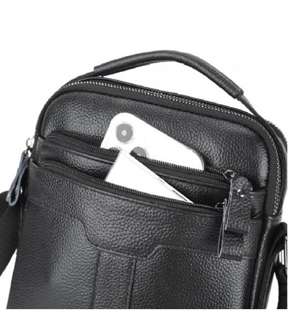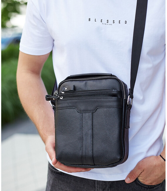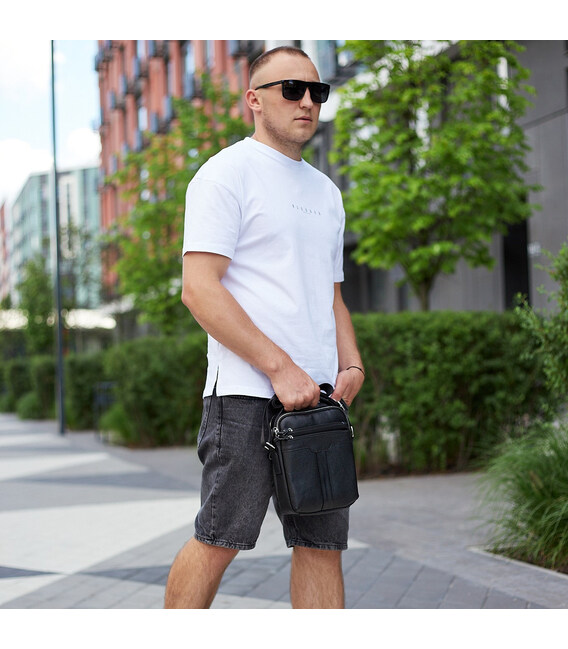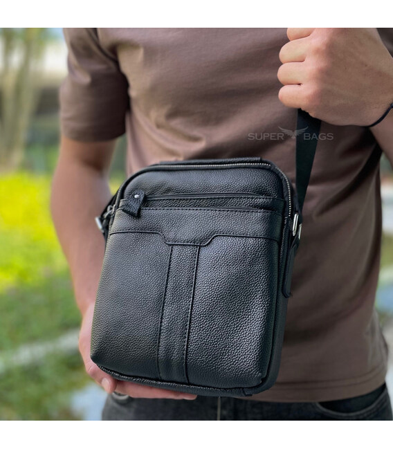 Чоловіча шкіряна сумка-месенджер через плече Tiding Bag A25-3278A Чорна