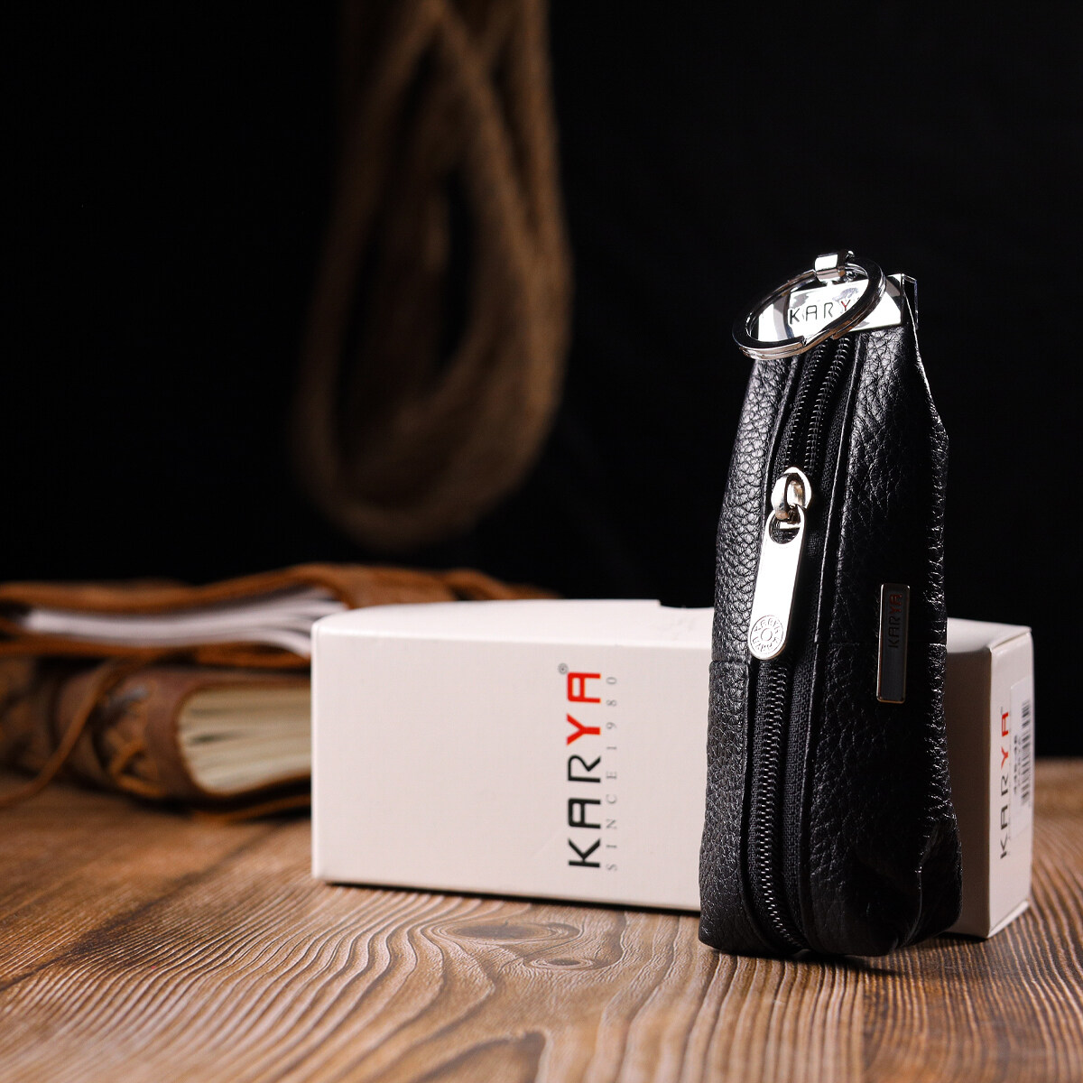 Зручна ключниця, чорного кольору із натуральної гладкої шкіри. Всі матеріали з яких виконано виріб – шкіра, фурнітура, підкладка – високої якості з підвищеними показниками стійкості до різного зносу. Аксесуар упакований у фірмову коробку, буде чудовим подарунком для будь-якої жінки.