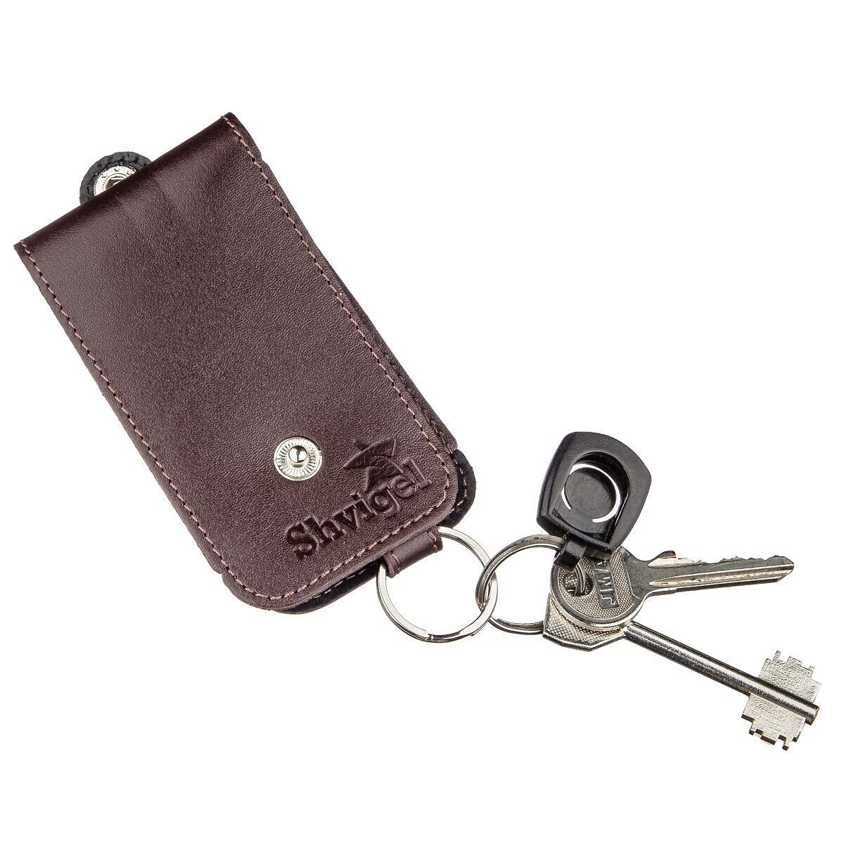 Компактна ключниця з щільної натуральної шкіри. У ній вам буде зручно носити ключі стандартного розміру. Закривається ключниця на шкіряний хлястик з кнопкою. Ключниця приглушеного коричневого кольору з рівним рядком по краях. Ключниця з натуральної шкіри прослужить вам далеко не один рік. Якщо ви шукаєте доступний і при цьому якісний подарунок - рекомендуємо вам шкіряну ключницю.