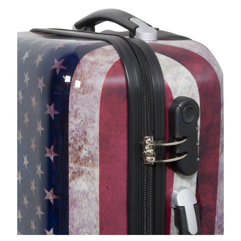 Принт прапора США в ретро стилі. Міцні корпуси з полікарбонату і інтегрований кодовий замок захищають речі від несанкціонованого доступу і зовнішнього впливу.