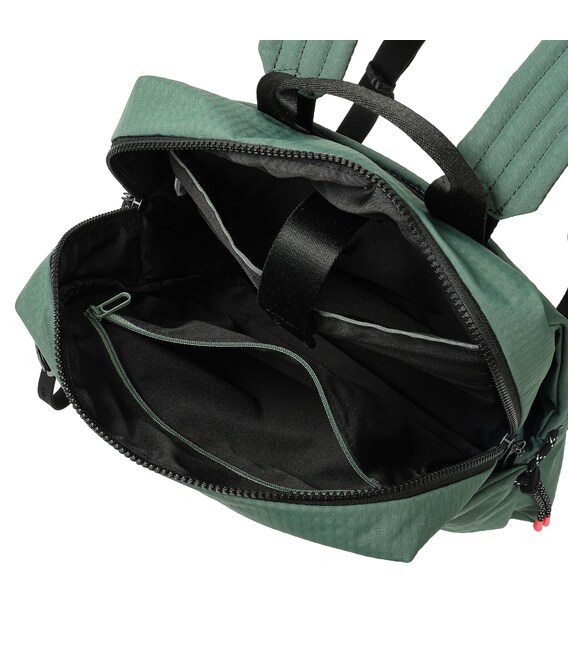 Універсальний рюкзак, виготовлений з переробленої тканини. Оснащений основним відділенням на блискавці з відділом для ноутбука 14", документів формату А4 і додатковою кишенею на блискавці. Зовні оснащений кишенею, для предметів першої необхідності. На задній частині виробу присутній розумний рукав для кріплення на телескопічну ручку валізи, який за потреби може перетворитися в кишеню, завдяки блискавці. Також, за потребою, рюкзак розширюється і має бокові кишені для пляшки/парасольки. Оснащений м'якими плечовими ременями для зручності переміщення.