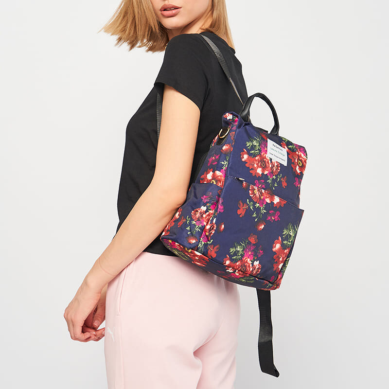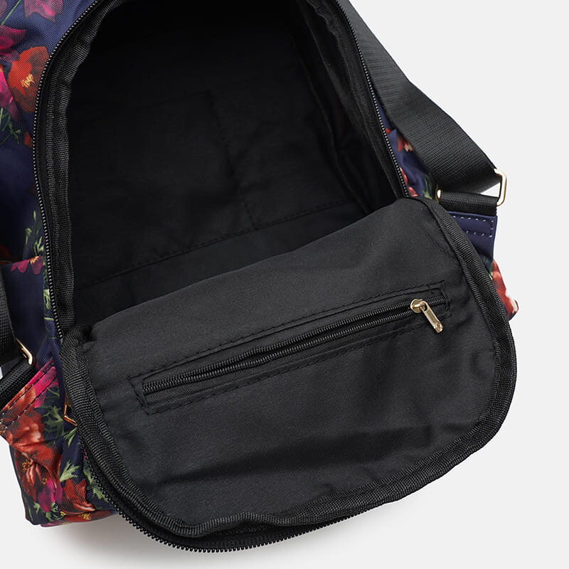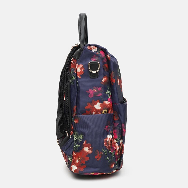 Жіночий кольоровий рюкзак виготовлений з текстилю. Має 1 відділення на блискавці. Всередині 1 кишеню на блискавці. Зовні 1 кишеня на блискавці та 2 бічні кишені. Підкладка з текстилю. Рюкзак можна носити на плечі так як є додатковий ремінь, що знімається. Плечові ремені регулюються за довжиною.