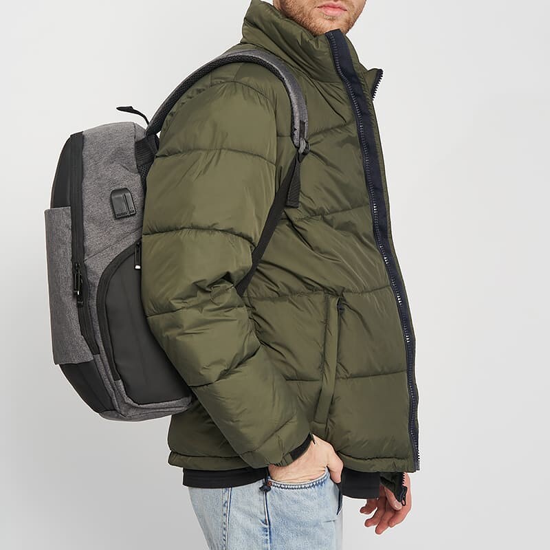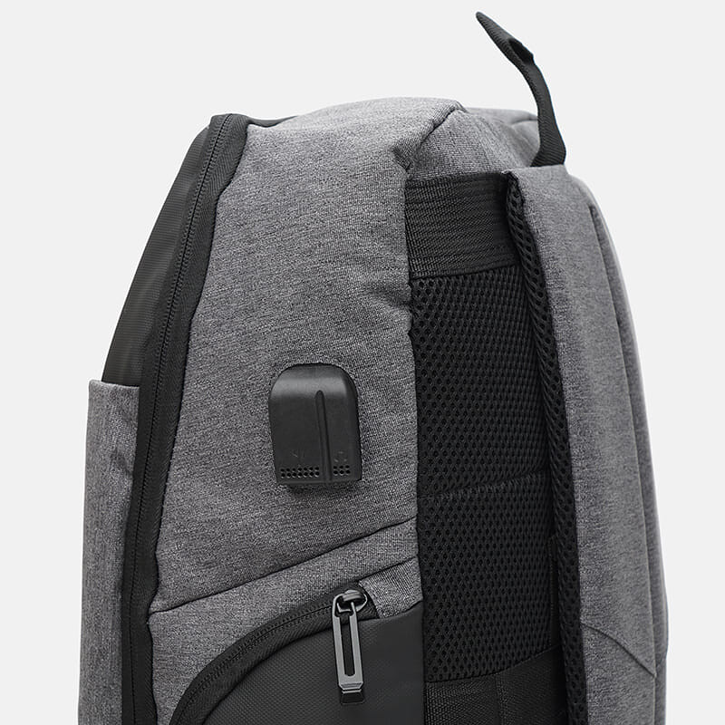 Рюкзак виконаний із текстилю. Закривається на блискавку. Всередині кишені для телефону та інших аксесуарів. Зовні є 2 бічні кишені, USB. Підкладка з текстилю. Плечові ремені регулюються за довжиною.