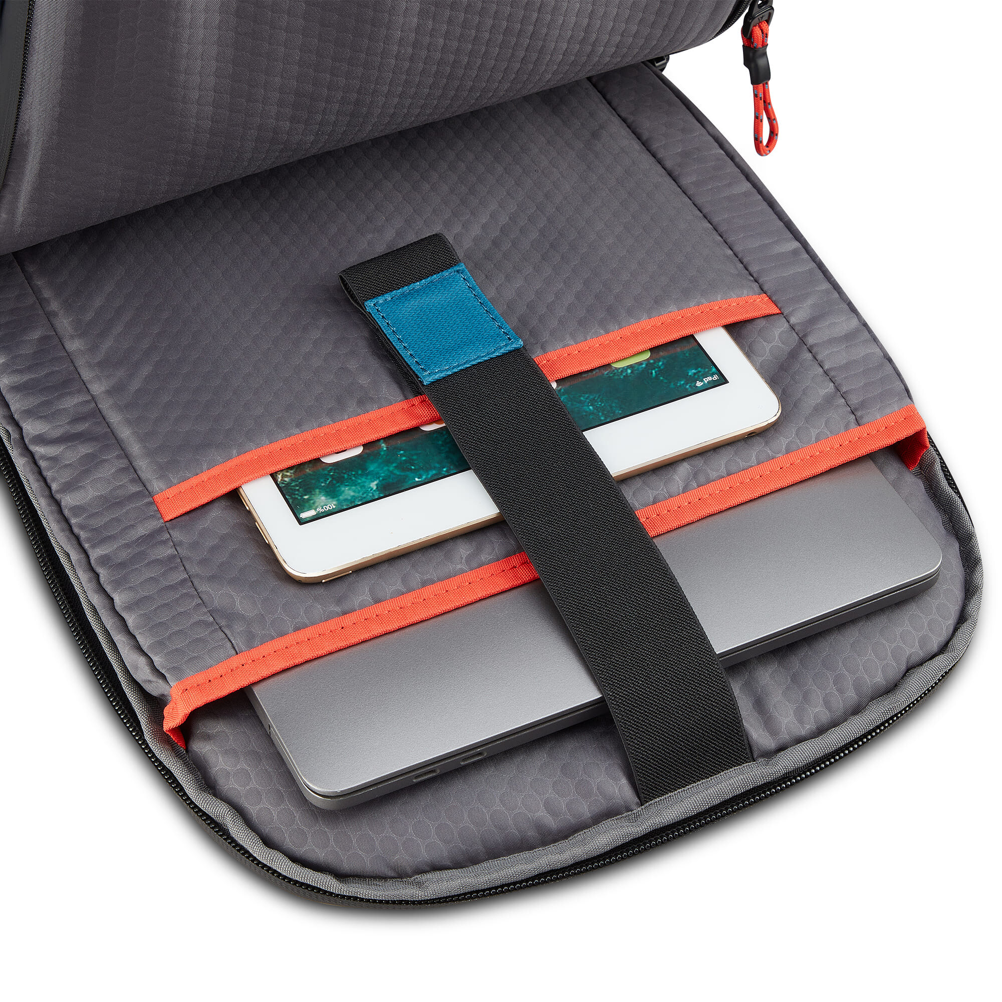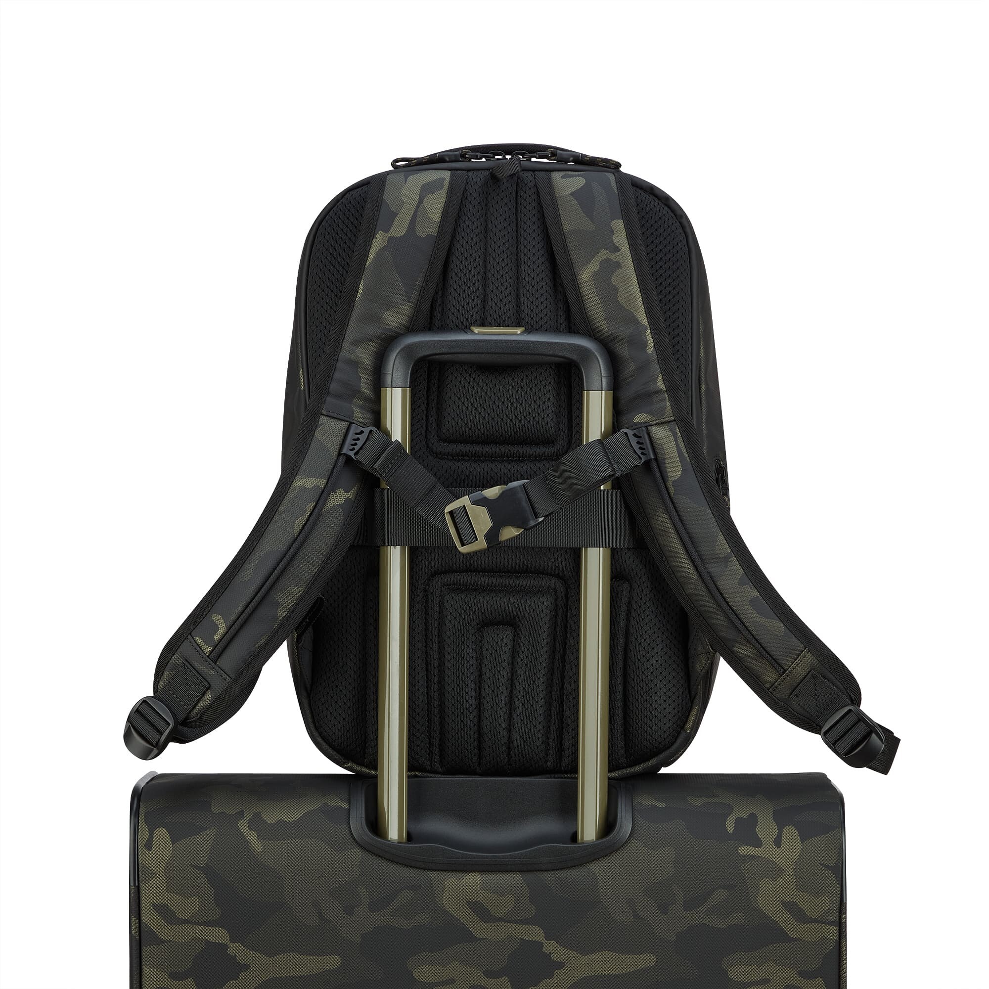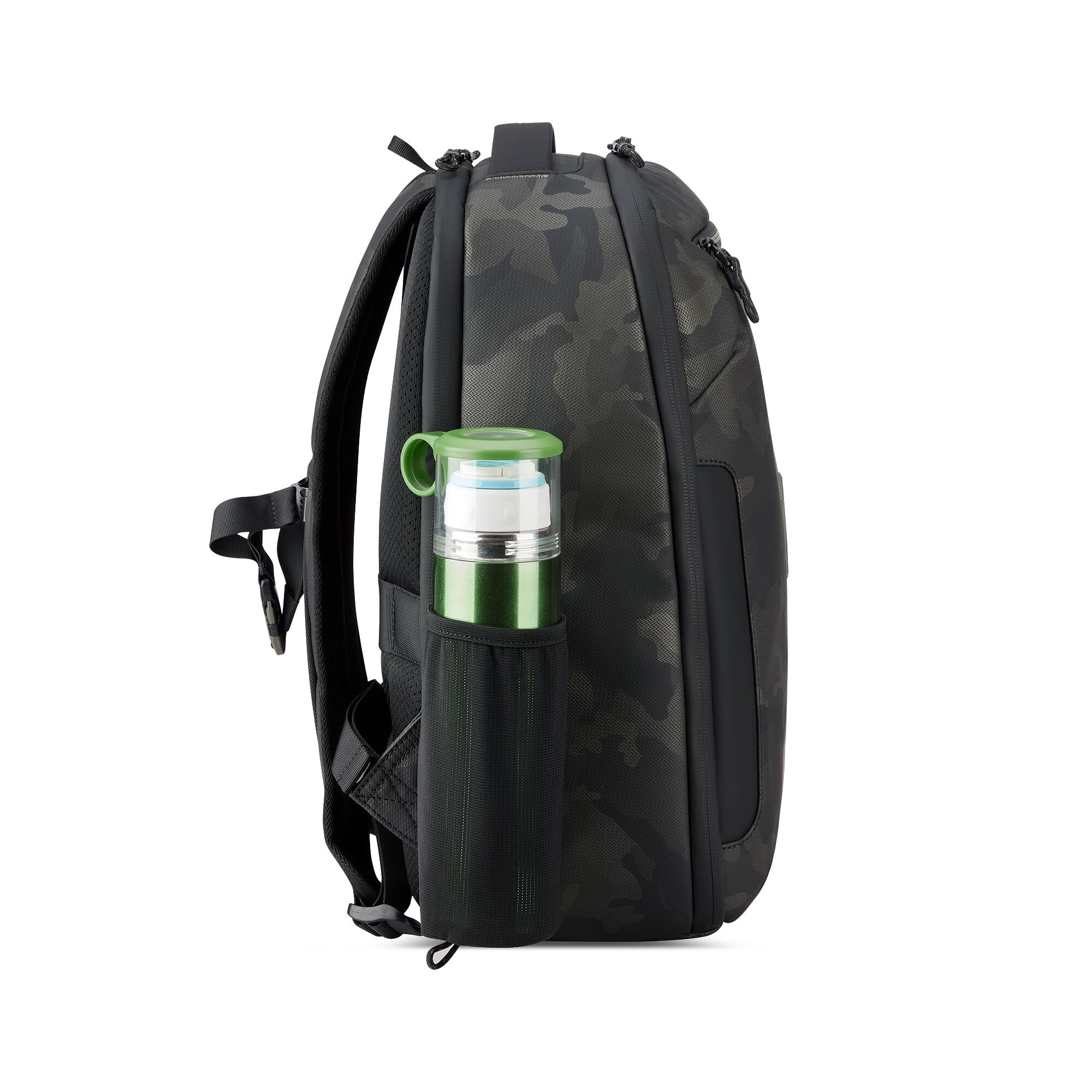 Рюкзак для подорожей-унікальна можливість поєднати особисті речі з сучасними гаджетами. Ідеальний варіант для відряджень в яких Вам знадобляться техніка, предмети першої необхідності і місце для одягу. Вироби колекції виготовлені з хвилястого поліестеру 900D з PU-покиттям, яке захищає від дощу, бризок, вологи й швидко сохне. Виріб оснащений двома основними віддідами, з кишенею для дрібних предметів з сітчастою перегородкою для організації та розділення одягу. Другий відділ призначений для ноутбука 15.6", планшету та документів формату А4. Також, передбачена бічна кишеня для пляшки/парасольки. Для зручності переміщення на задній частині розміщені м'які плечові ремені, планка для фіксації на телескопічній системі валізи, можливість застібнути плечові ремені фіксатором на грудях та ручка для вертикального перенесення.