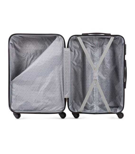 Розкішна валізу знаменитої фірми Wings, створена з думкою для найбільш вибагливих клієнтів. Сучасна, супер легка модель, виконана з дуже витривалого і стійкого до замальовки матеріалу ABS CARBON з ергономічною ручкою. Зовнішні, гумові ручки, також э шифрувальний замок, інтегрований з валізою. Всередині є дюралюмінієвий стелаж, вбудований у валізу завдяки чому, зберігає його від пошкодженнь, наприклад при перевантаженні. Обладнаний 4 термопластичними каучуковими колесами на металевих кріпленнях, які обертаються на 360 та забезпечують стабільність, легкість пересування. Середина, викладена товстою підкладкою. Верхня комора застібається на замок за допомогою спеціальної сітки. Нижня комора має поясаи для фіксації багажу.