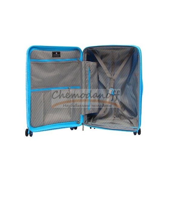 Усередині валіз є 2 відділення, одне з внутрішніми ременями кріплення багажу, інше закривається на блискавку.