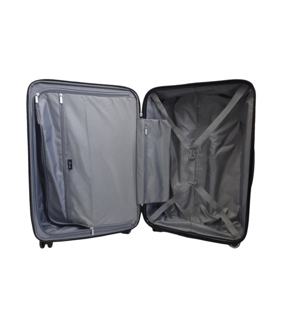 Чемодан закривається на водотталківающую блискавку, всередині передбачені притискні ремені для багажу в одному відділенні, друге закривається текстильної кришкою на блискавки.