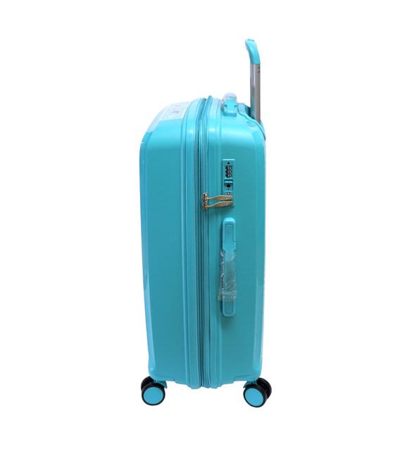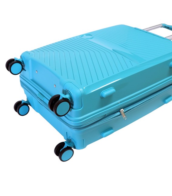 Чемодан оснащений чотирма спареними стійкими колесами, які вільно обертаються на 360 градусів.